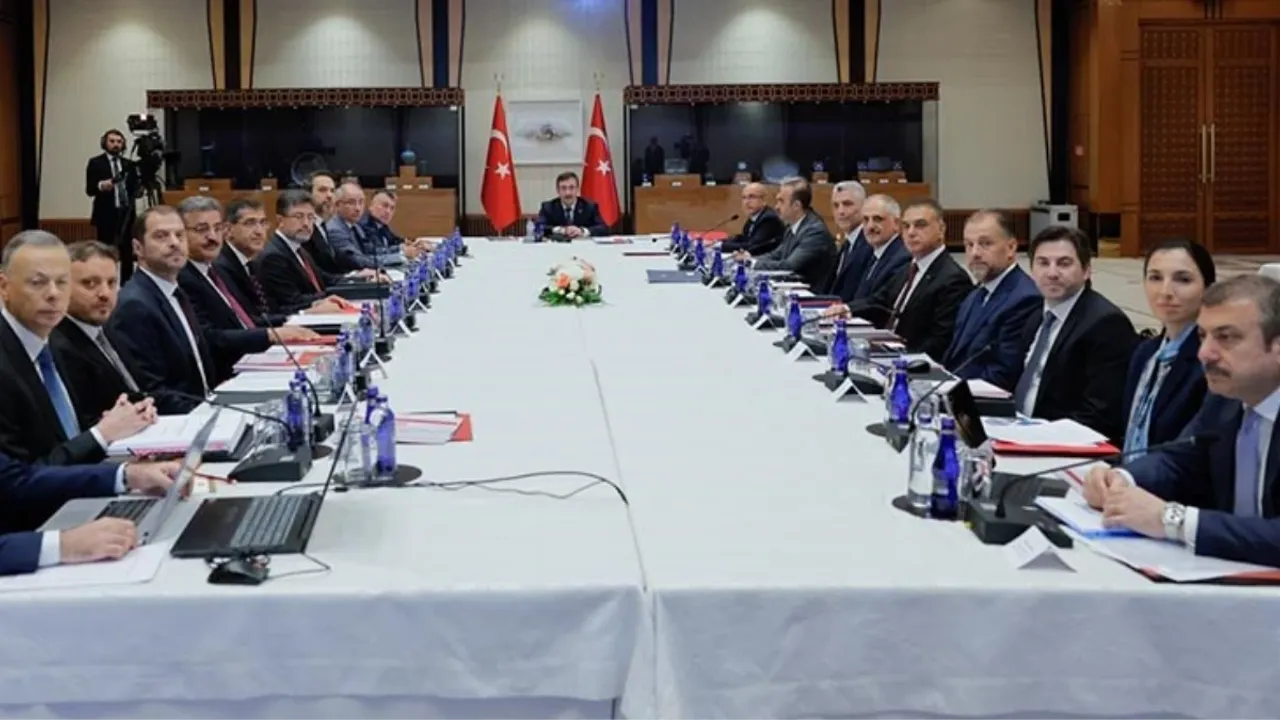 Bugünkü toplantıda ilk olarak güncel makroekonomik gelişmeler ile bütçe görünümü değerlendirilmiştir.Ekonomide öngörülebilirliği artıracak, beklentilere yön verecek Orta Vadeli Programa (OVP) ilişkin hazırlıklar gözden geçirilmiştir. OVP ile makroekonomik hedefler ve yapısal reform politikalarımız güncellenecek, önümüzdeki üç yıla ilişkin yol haritası ortaya konulacaktır.İlgili tüm kesimlerle istişare içinde hazırlanacak OVP'nin, öngörülebilirliği arttırarak yatırım ortamına önemli katkılar sunması beklenmektedir.Mali disiplini esas alan maliye politikamızı kamuda tasarruf anlayışı ile güçlendirerek elde edilecek mali alan, vatandaşlarımızın refahını artırmak için kullanılacaktır.Deprem harcamaları hariç tutulduğunda bütçe açığının milli gelire oranını AB standartlarında tutacak bir yaklaşım devam ettirilecektir.Toplam maliyeti 104 milyar dolara ulaşan deprem konusunda ilgili tüm kurumların koordinasyon içinde hareket etmesi ve deprem bölgesinde ekonomik ve sosyal hayatın rehabilitasyonuna bütçe imkanları içinde gerekli değişiklikleri yaparak tüm kurumların öncelik tanıması sağlanacaktır.Önümüzdeki süreçte temel makroekonomik hedefimiz enflasyonu yeniden tek haneli seviyelere düşürmektir. Bu kapsamda toplantıda fiyat istikrarıyla birlikte finansal istikrarın devamı için Merkez Bankası'nın uhdesinde olmayan alanlarda atılacak adımlar ele alınmıştır.Para politikasının genel çerçevesi ile son dönemde atılan miktarsal sıkılaştırma adımları konusunda bilgilendirme yapılmış, Kur Korumalı Mevduat konusunda gelişmeler değerlendirilmiştir.Toplantıda mesleki eğitim merkezlerine sağlanan devlet katkısının etkinliği özel olarak değerlendirilmiş, tasarrufu ve etkinliği artırıcı kararlar alınmıştır.Otomotiv ve gıda perakende sektöründe son dönemlerde arz talep dengesini bozacak şekilde oluşan stokçuluk ve haksız uygulamalar ile bunlarla bağlantılı fahiş fiyat artışlarının önlenmesine yönelik yürütülen çalışmalar değerlendirilmiştir.Ekonomi Koordinasyon Kurulu üyeleri tarafından Türkiye Yüzyılı'nda daha güçlü ilerlememizi sağlayacak gündem önerileri sunulmuş ve bu süreçte ilgili tüm kurumlarımızın uyum, iş birliği ve tam bir koordinasyon içinde çalışma kararlılığı vurgulanmıştır.Güven ve istikrar ortamında enflasyon ile mücadele öncelikli olmaya devam edecek, nitelikli yatırımlarla yüksek katma değerli üretimi, ihracatı ve potansiyel büyümeyi daha da güçlendirecek, istihdam artışını destekleyecek, tasarrufları artırarak cari işlemler açığında kalıcı iyileşmeyi sağlayacak etkin ve kararlı adımlar eşgüdüm içerisinde hayata geçirilecektir."
