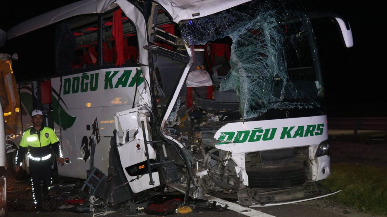 Otobüste bulunan yolcu, “Kaza nedeniyle kafamızı vurduk. Otobüste çocuklar vardı. Bağrışmalar oldu. Tırın makas attığı söyleniyor” dedi.