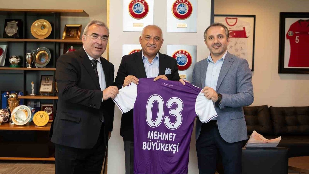 TFF 2. Lig ekiplerinden Afyonspor yönetim kurulu üyeleri ziyaret ettikleri Türkiye Futbol Federasyonu Başkanı Mehmet Büyükekşi’ye Afyonspor forması hediye ettiler.