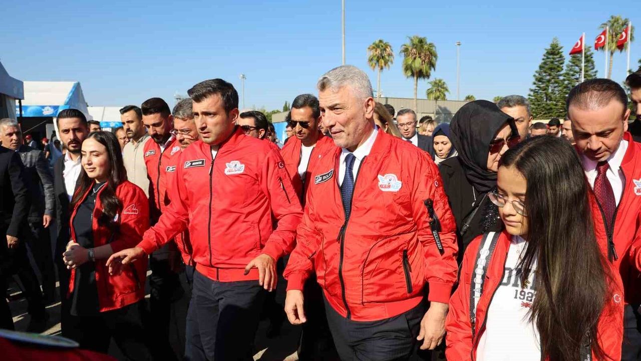 Türkiye Teknoloji Takımı Vakfı ile Sanayi ve Teknoloji Bakanlığının ana yürütücülüğünde düzenlenen TEKNOFEST, ikinci gününde de Adana Havalimanı’nda devam ediyor. Ticaret Bakanı Ömer Bolat da festival alanına geldi. TEKNOFEST Yönetim Kurulu ve Türkiye Teknoloji Takımı Vakfı Mütevelli Heyeti Başkanı Selçuk Bayraktar tarafından karşılanan Bolat, önce stantları inceledi daha sonra proje yapan öğrencilerle görüşüp hatıra fotoğrafı çektirdi. Bolat, son olarak da Türk Yıldızları’nın gösterisini izledi.
