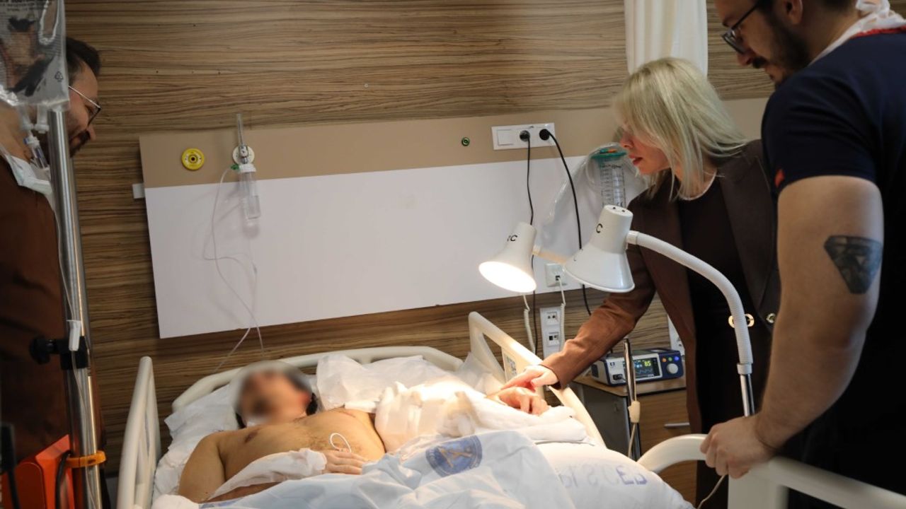 Rektör Özkan, "Bunlar komplike ameliyatlar kolay ameliyatlar değil. Çünkü bu keskin temiz bir kesi değil koparak yerinden çıkmış. Hem kol hem bacak için söylüyorum bunu. Tabii bunlar çok teknik detaylar ama alıcı damarlarda sıkıntı oluyor. Bu anlamda çok ciddi tabi. Ekibi zorladı. Komplike ameliyatlardı ama dediğim gibi inşallah sonucu bir hafta on gün sonra yine size pozitif bir şekilde veririz. Bu tür ameliyatlarda dakikanın önemi var. Öyle olunca 2 hastada aynı anda ameliyata başlandı. Neredeyse aynı anda ameliyatları da sonlandırdık. Aynı hızla gitti. İkisi de yan yana 2 odada multi travma hastası bunlar. Bu anlamda ekibimiz de çok tabi tecrübeli. Bütün ekibe çok teşekkür ediyorum. Katkısı olan herkese buraya gelmesini sağlayan, organları yine ekstra getiren dokuları yine burada tedavi eden, tedaviye katılan herkese teşekkür ediyorum. Bir insanın hayatına katkı sunmak bizim işimizin en kıymetli, en maneviyatı yüksek tarafı elbette." dedi.