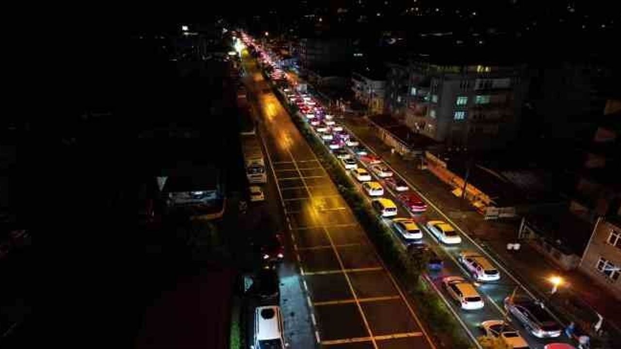 Sarp Sınır Kapısı’nı gün gece yarısı itibariyle 40 bin 960 yolcu kullanırken, 2 bin 410 adet araç giriş ve çıkış yaptı. Sınır kapısındaki yoğunluk bölgede trafiği de olumsuz etkilerken, tır kuyruğunu görmeye alışık olduğumuz bölgede Sarp Sınır Kapısı’ndan Hopa ilçesine 20 kilometrelik araç kuyruğu oluştu. Araç kuyruğu havadan görüntülendi.