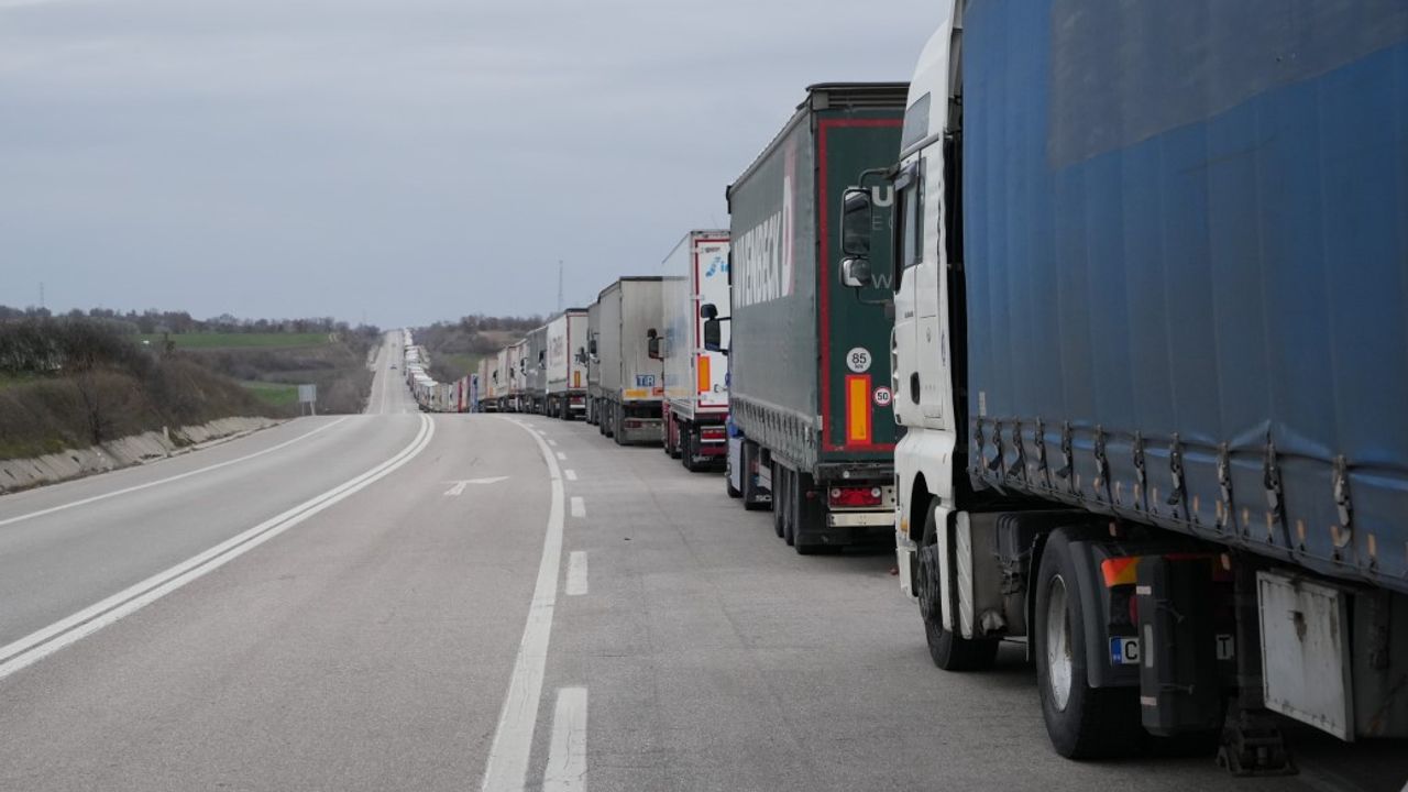 Türkiye’de aldıkları ihracat yüklerini Avrupa ülkelerine götürmek için yola çıkarak, Hamzabeyli Sınır kapısına gelen tırlar, soğukta havada yaklaşık 17 kilometre kuyruk oluşurdu