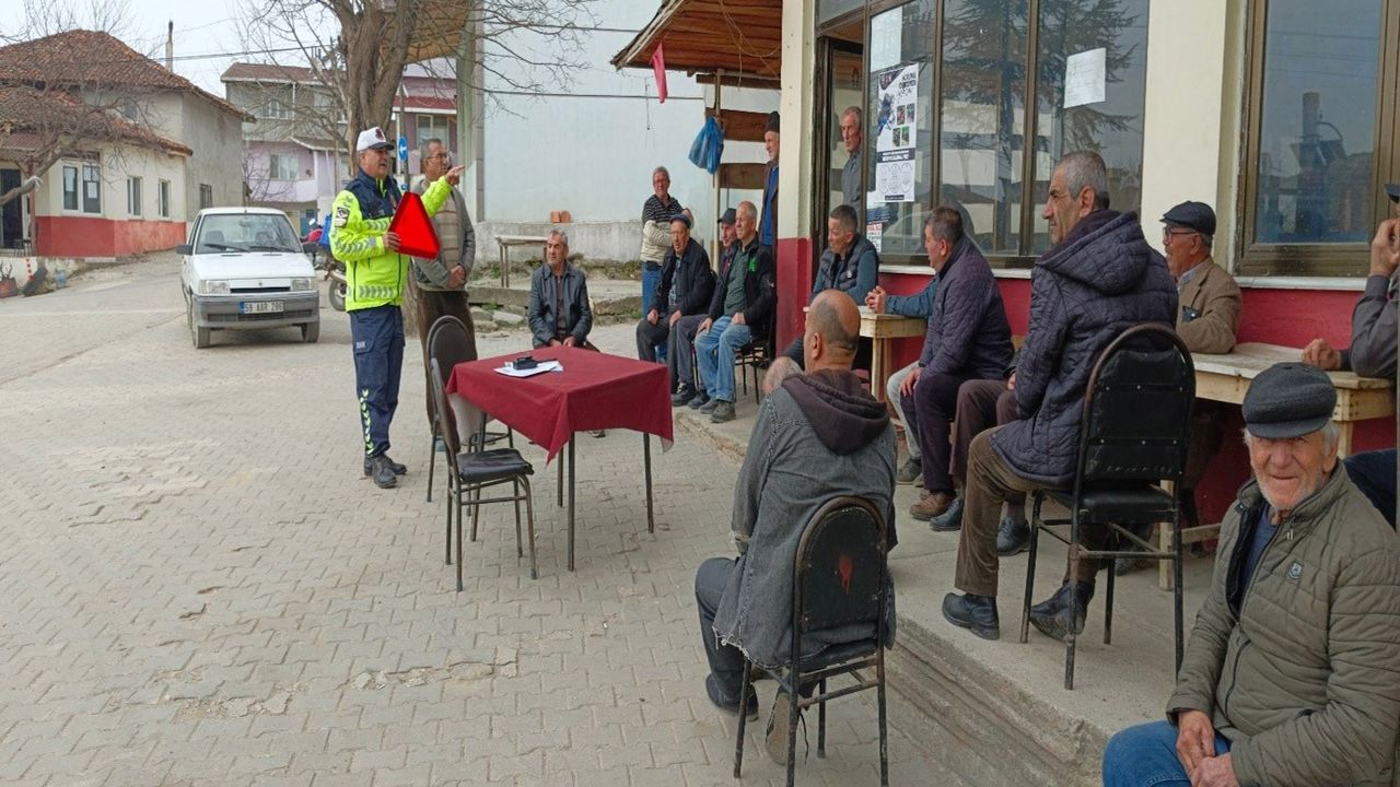 Kırklareli İl Jandarma Komutanlığı ekipleri sorumlu oldukları bölgelerde trafik kazalarının önlenmesi ve trafik güvenliğinin sağlanmasına yönelik köyleri ziyaret etti. Ekipler traktör sürücülerine uyarı lambası ve reflektör bulundurmaları, traktöre en fazla bir römork takmaları ve yük üzerinde yolcu taşımamaları uyarısında bulundu, kavşaklarda geçiş üstünlüğü konusunda bilgi verdi.
