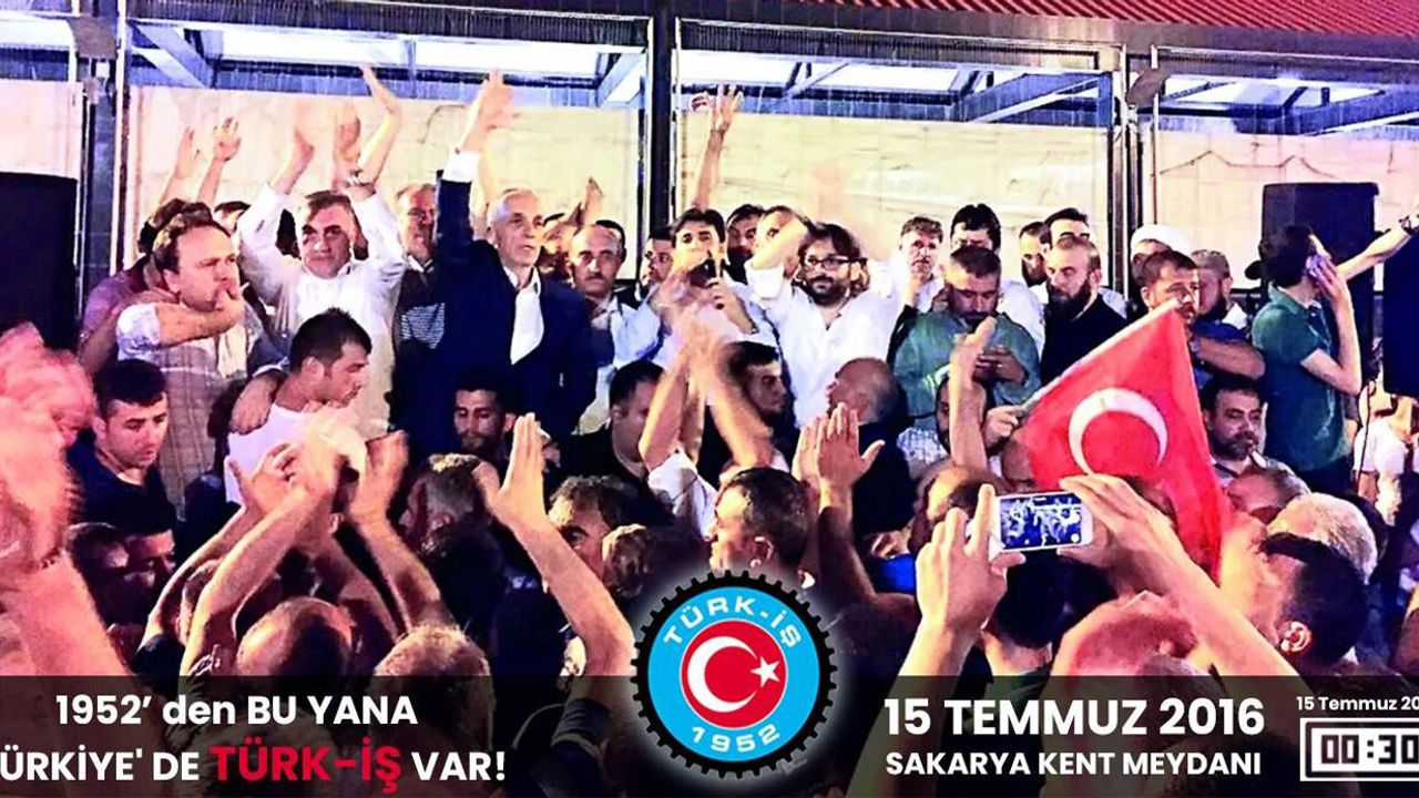TÜRK-İŞ, Yönetim Kurulu Başkanı Ergün Atalay adına yayınladığı bildiride milletin iradesini temsil eden Türkiye Büyük Millet Meclisi’nin bombalanmasını en kanlı ihanet olduğuna dikkati çekerek, “Milletimize ve millet iradesini temsil eden Türkiye Büyük Millet Meclis’ine, askerine, polisine roket atacak mermi yağdıracak kadar gözü dönmüş canilerin en karanlık en kanlı ihanetlerinden biri olan 15 Temmuz hain darbe/işgal girişiminin yedinci yıldönümünde yaşadığımız acıları bir kez daha hatırlarken, gördüğümüz ihaneti unutmadığımızı belirtmek istiyoruz” açıklamalarında bulundu.