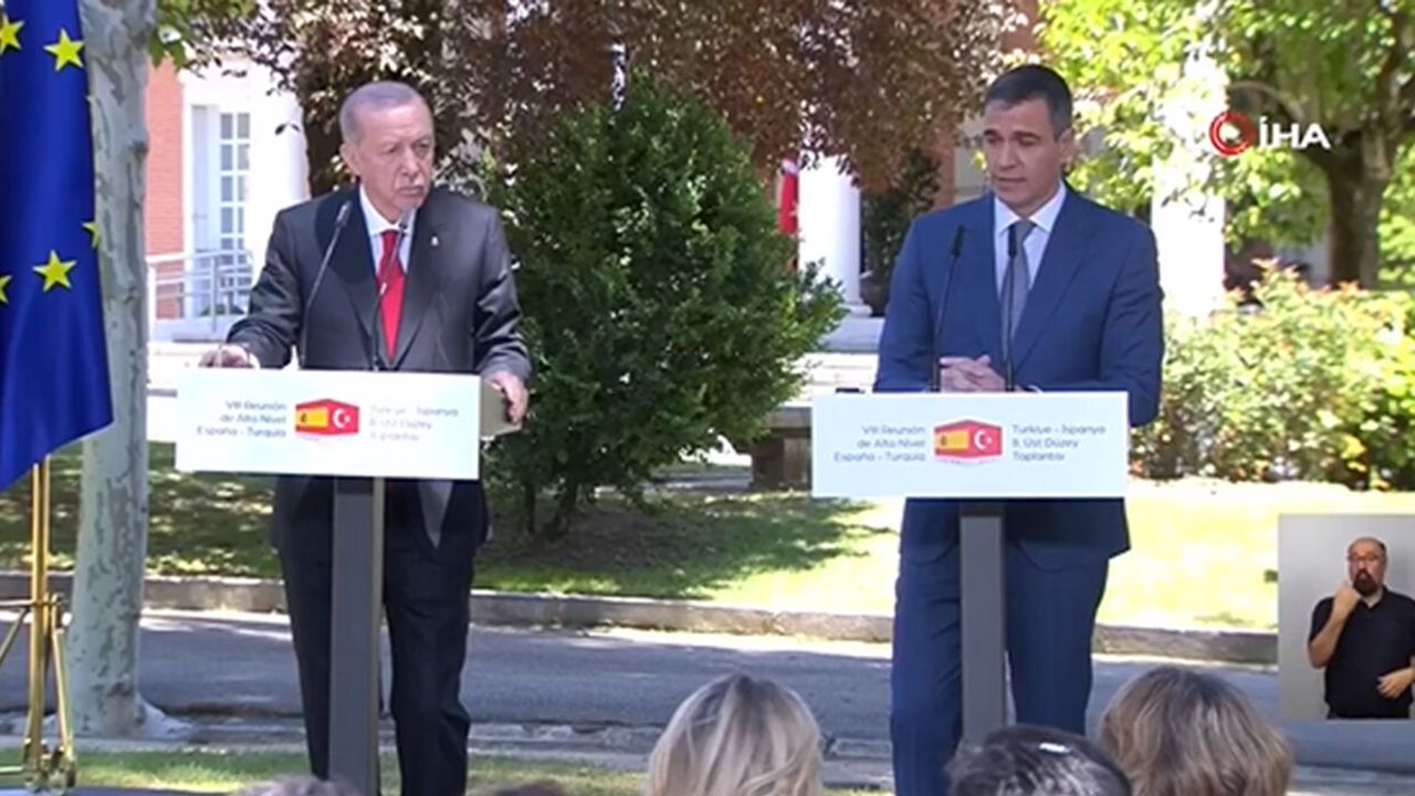 İspanya Başbakanı Pedro Sanchez'in açıklamalarından satır başları:İspanya Başbakanı Pedro Sanchez, Cumhurbaşkanı Erdoğan ile gerçekleştirdiği basın toplantısında, "Türkiye ile Avrupa Birliği arasındaki yapıcı rolümüzü sürdürmeye devam edeceğiz" dedi.