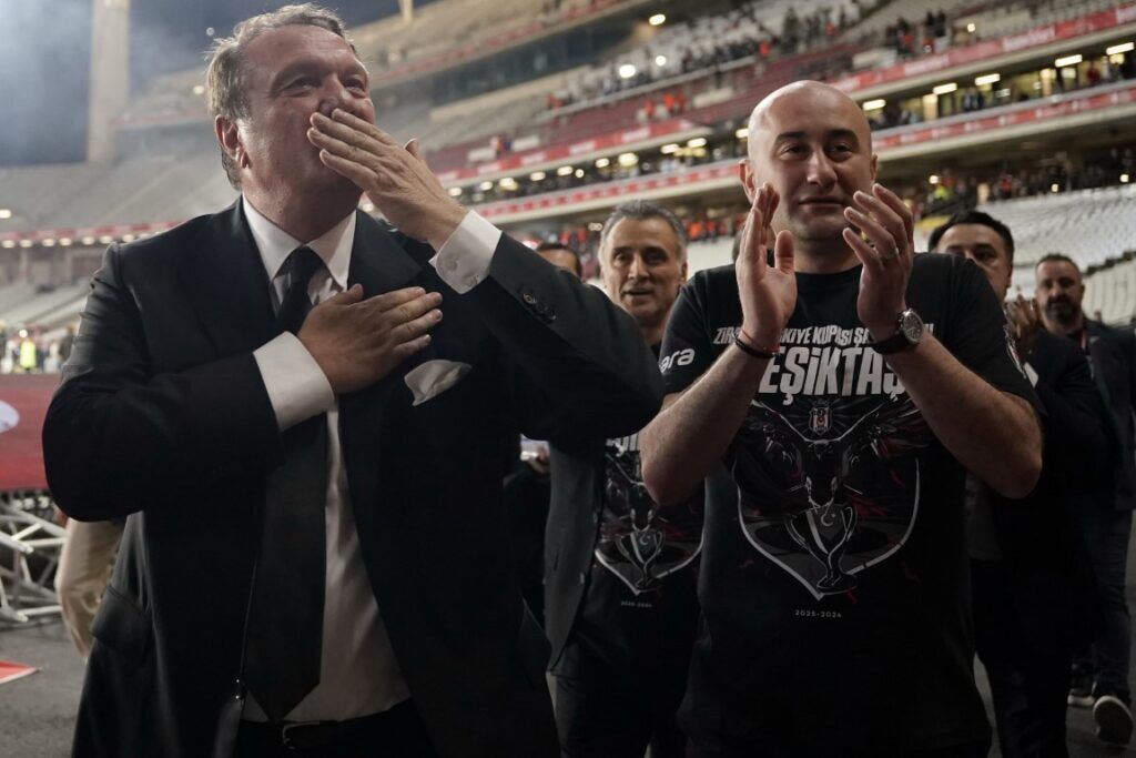Daha sonra Beşiktaşlı futbolcular ve teknik ekip hem madalyalarını hem de kupayı almak için platforma çıktı.