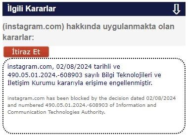 İletişim Başkanı Altun’un bu paylaşımının ardından BTK tarafından 2 Ağustos tarihinde Instagram’a erişim engeli getirildi. BTK’nin site bilgileri sorgulama menüsünden Instagram’a erişim engeli kararı alındığı öğrenilirken erişim engelinin neden yapıldığına ve ne kadar süreceğinize ilişkin ise henüz bir açıklama yapılmadı.