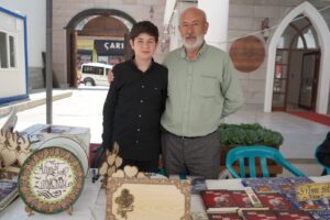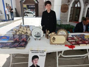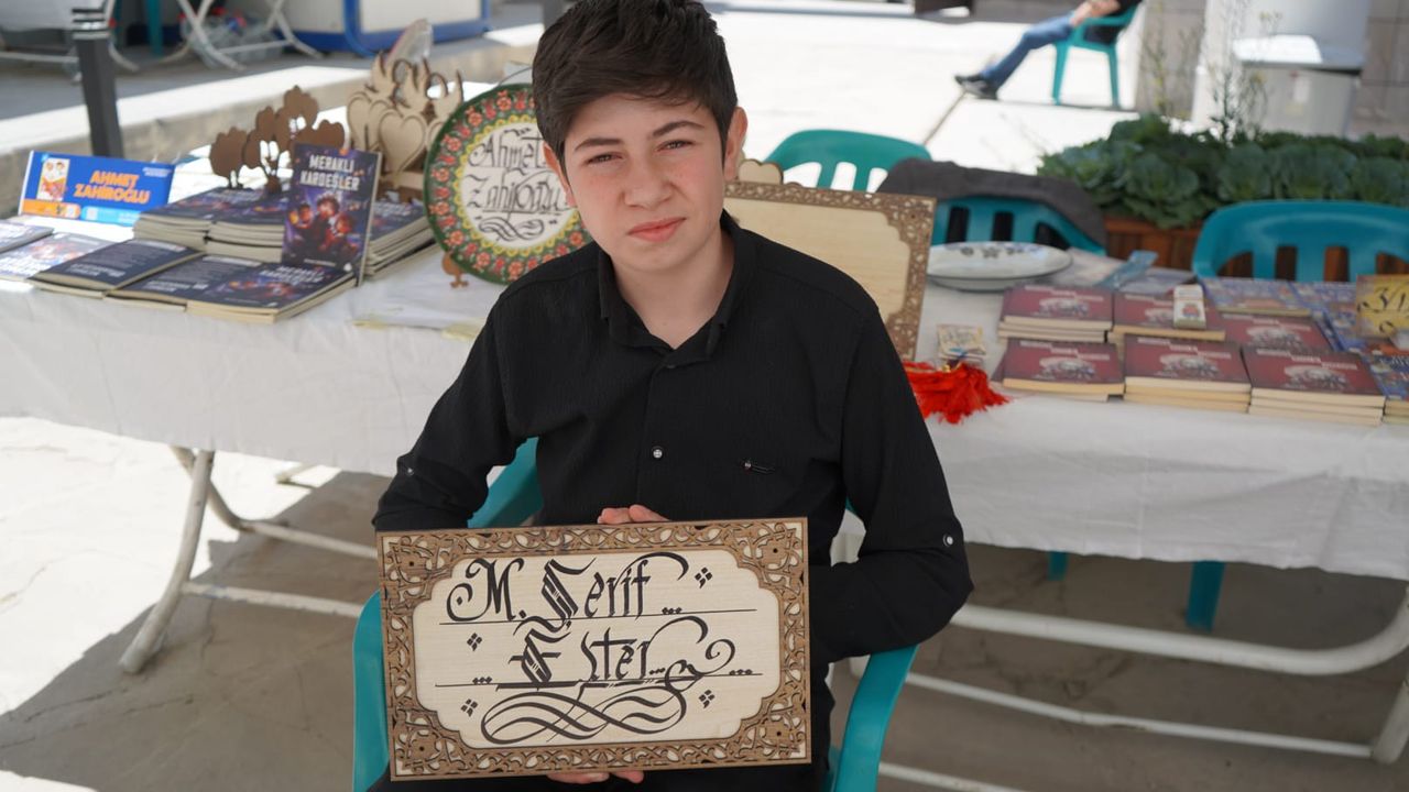 Babasının yönlendirmesiyle üç yıl önce kaligrafiyle tanışan Yusuf Can, son bir yıldır kendi yazılarını üretmeye başladı. Kaligrafiyle tanışma sürecini anlatan Yusuf Can, “Babam bu işi yapıyordu, ilgimi çekti. Yazmayı ondan öğrendim. Kaligrafiyle uğraşırken çok mutlu oluyorum. Severek yapıyorum ve bu alanda kendimi daha da geliştirmek istiyorum” dedi.