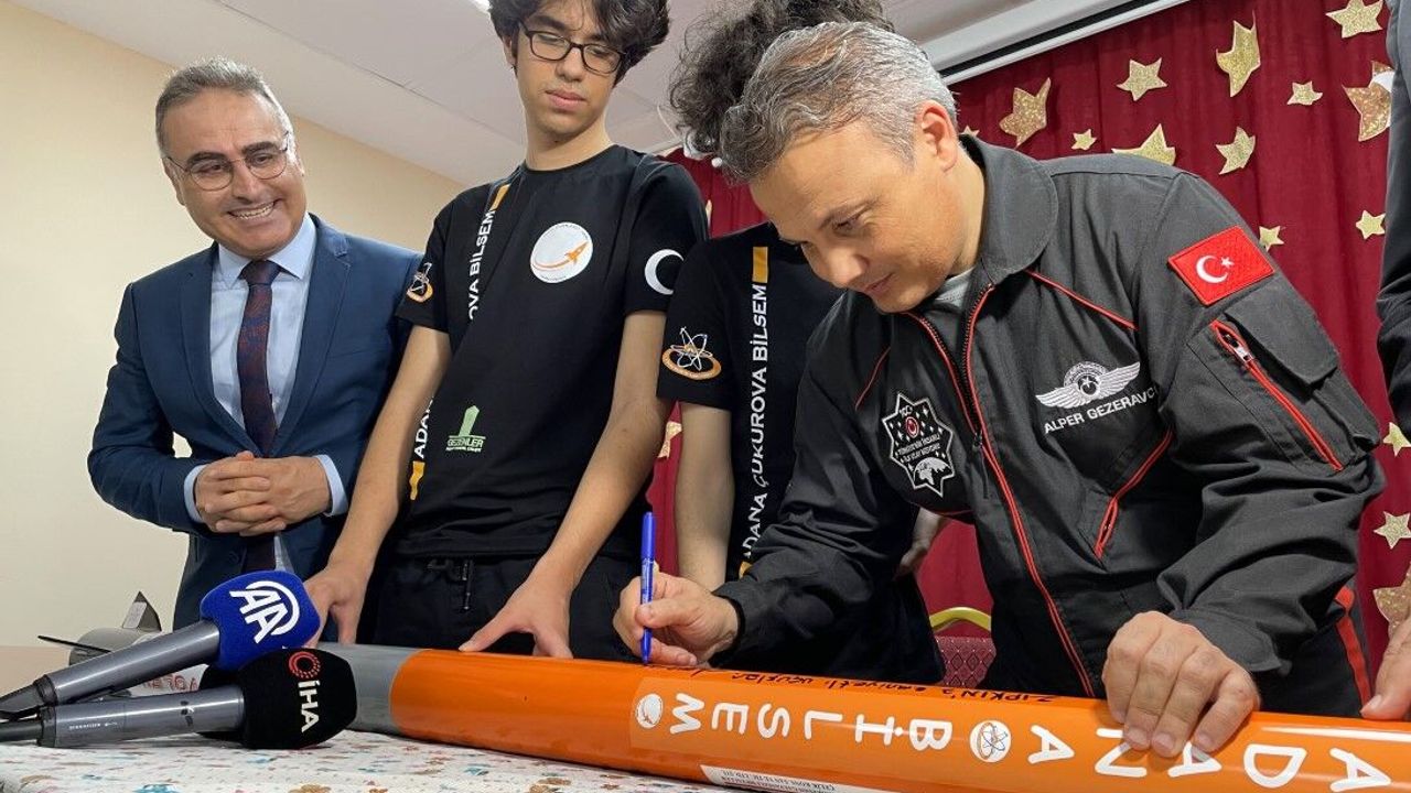 Gezeravcı, İstiklal İlkokulu'nda da Yüreğir Bilim ve Sanat Merkezi Roket Takımı öğrencilerinin hazırlamış olduğu rokete, Hava Kuvvetleri'nde ilk uçtuğu filonun ismi olan 'Zıpkın' adını koydu. Daha sonra Gezeravcı, roketin üstüne 'Zıpkın'a emniyetli uçuşlar' yazarak imza attı.