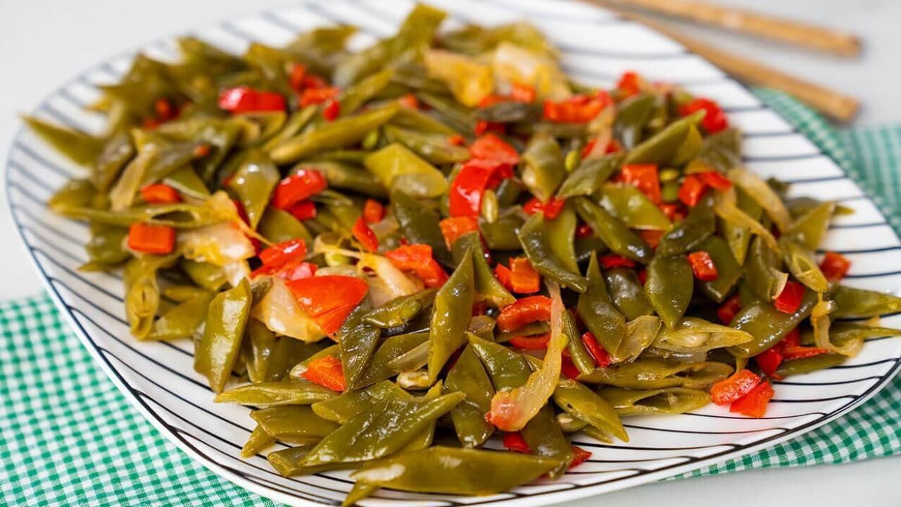 Soğanların rengi dönüp diriliklerini kaybedince kestiğiniz fasulye turşularını tavanın içerisine ekleyin.
