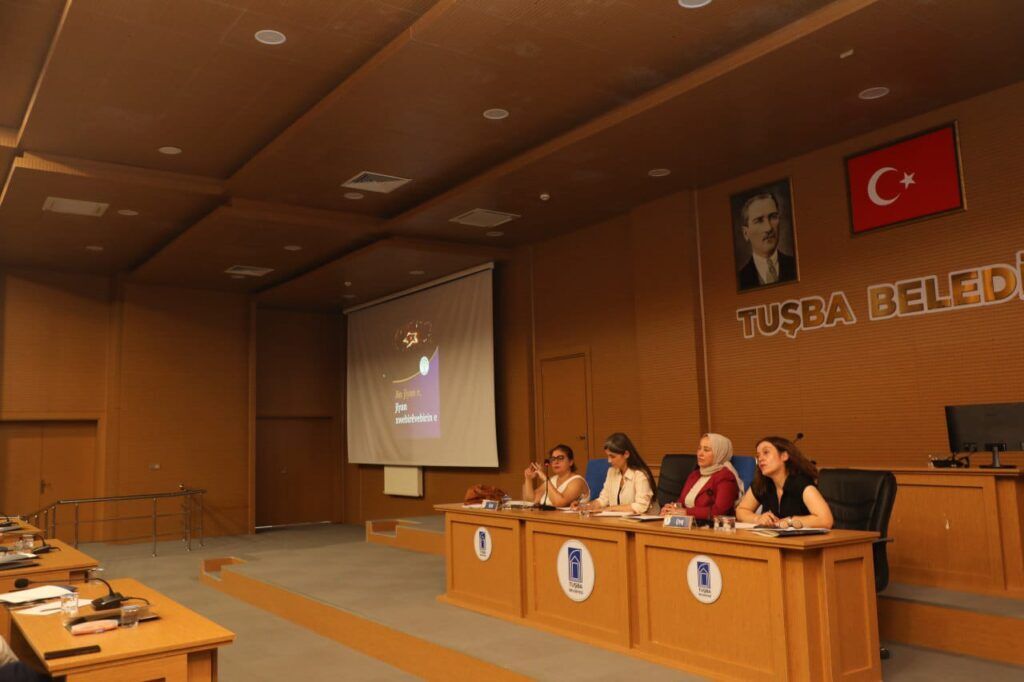 Programda ilk olarak söz alan Tuşba Belediyesi Eşbaşkanı Hanım Akkoş, kadına yönelik şiddetin her alanda artarak devam ettiğini, bununla mücadele etmek için de aynı paralelde her alanda kadın dayanışmasını örgütlemek gerektiğini belirtti. Yönetime geldiklerinden bu yana şiddetle mücadele ağlarını belediyenin her biriminde harekete geçirdiklerini söyleyen Akkoş, çalışmalarını da aynı hassasiyetle ilçe ve bağlı tüm mahallelerde yürüttüklerini dile getirdi.