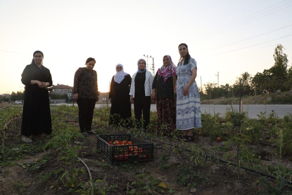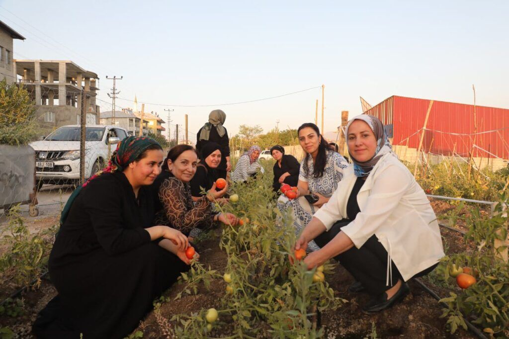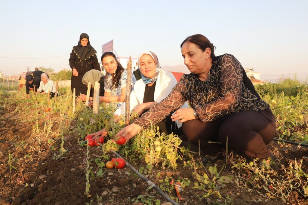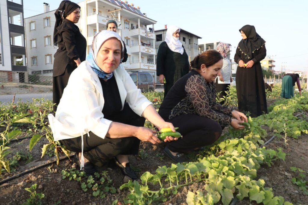 Yaz aylarının başında ekimi gerçekleştirilen domates, biber, salatalık gibi ürünlerin hasadını gerçekleştiren Eşbaşkan Akkoş ve kadınlar, bostanda yeşeren sebzelerin verimli olmasının mutluluğunu yaşadı.