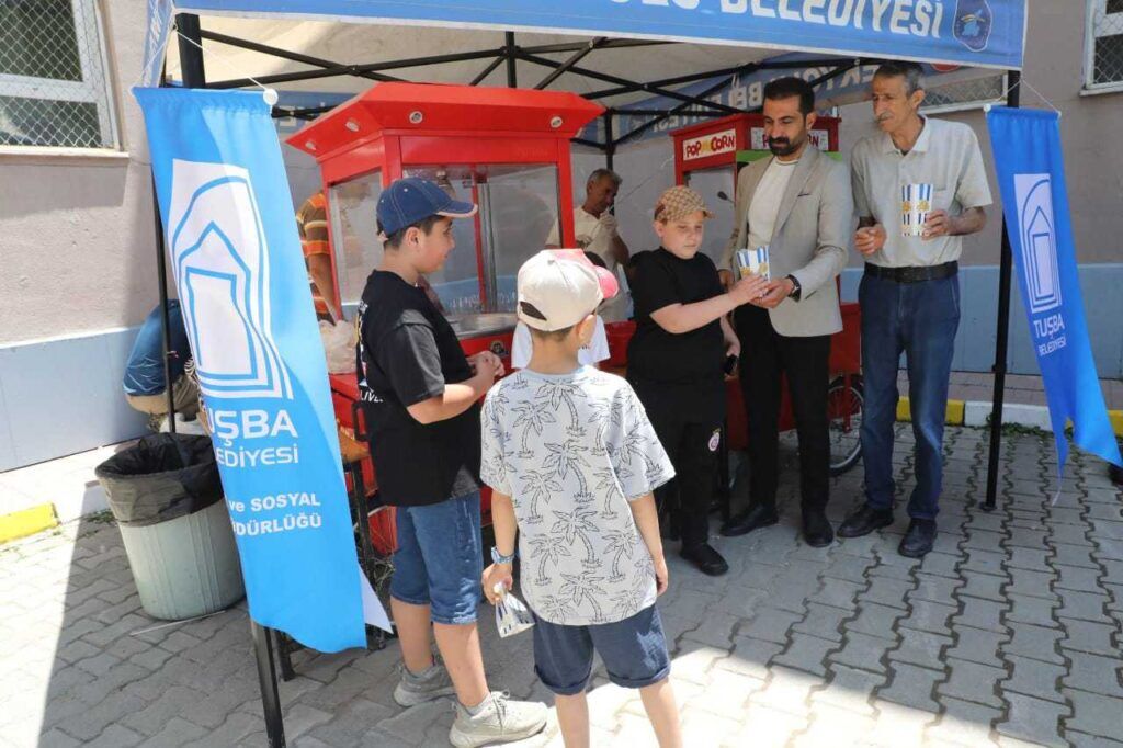 Organizasyonlarda ihtiyaç duyulan çadır kurulum hizmetini ücretsiz olarak sunan belediye, aynı zamanda katılımcı öğrenci, öğretmen ve velilere sıcak mısır ikramında bulundu.