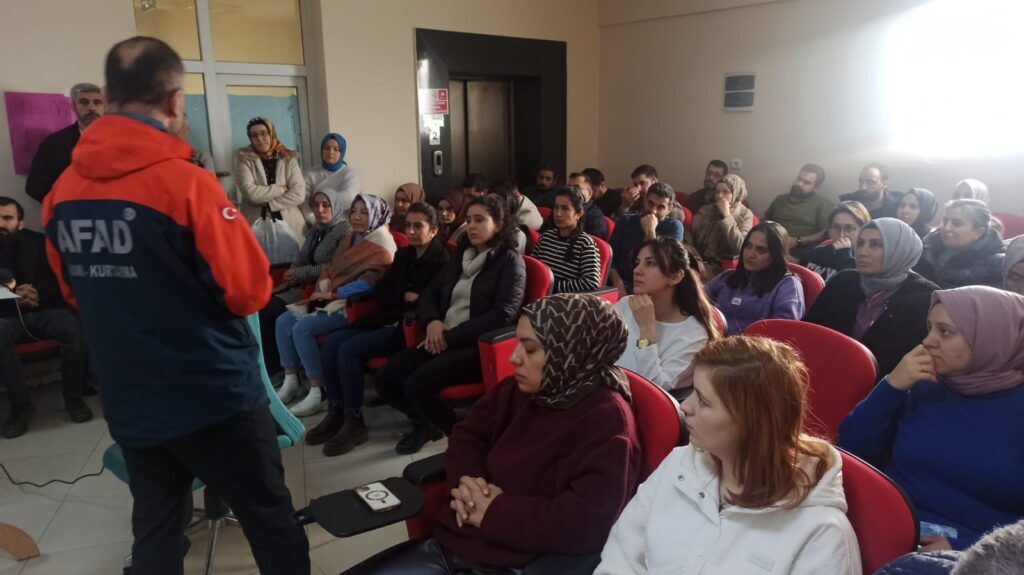Afet ve Acil Durum Yönetimi Başkanlığı (AFAD) Van İl Müdürlüğü tarafından uygulanan tatbikatta, afet öncesi ve sonrası alınması gereken önlemler, afet anında doğru hareket tarzları ve kriz yönetimi konularında bilgilendirme yapıldı. Tatbikatla ilgili konuşan İlçe Sağlık Müdürü Dr. Semra Gümüş, afet bilincinin toplum için hayati önem taşıdığını vurgulayarak, “Afet öncesinde alınacak tedbirler ve afet anında doğru müdahale yöntemleri, can ve mal kaybının önüne geçmek adına büyük önem taşımaktadır. Van ilimiz, deprem ve yangın riski taşıyan bir bölge olduğu için bu konuda bilinçli olmamız gerekiyor. Bu eğitimi sağlayan AFAD Müdürlüğümüze teşekkür ediyorum.” dedi.