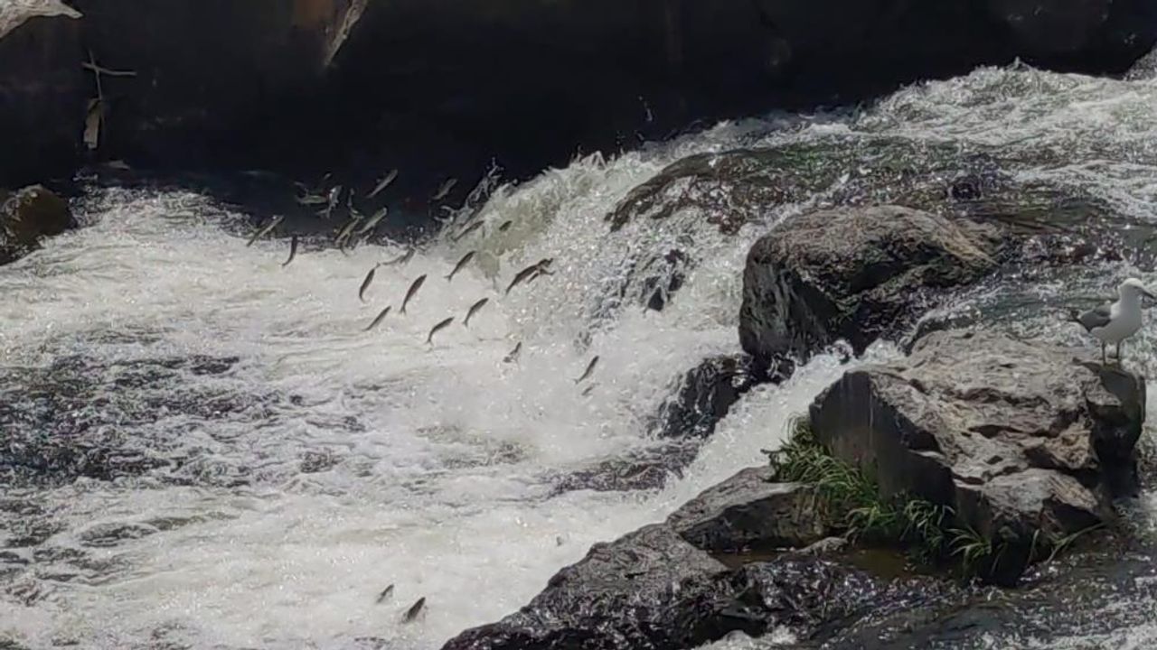 Önüne çıkan engelleri adeta uçarcasına aşan inci kefali, izleyenlere görsel şölen, dere kenarlarına akın eden martılara ise ziyafet sunuyor.