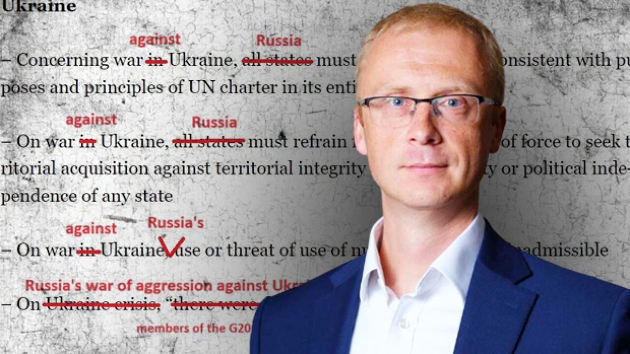 G20 adopted a final declaration. We are grateful to the partners who tried to include strong wording in the text. However, in terms of Russia's aggression against Ukraine, G20 has nothing to be proud of. This is how the main elements of the text could look to be closer to reality pic.twitter.com/qZqYluVKKS
