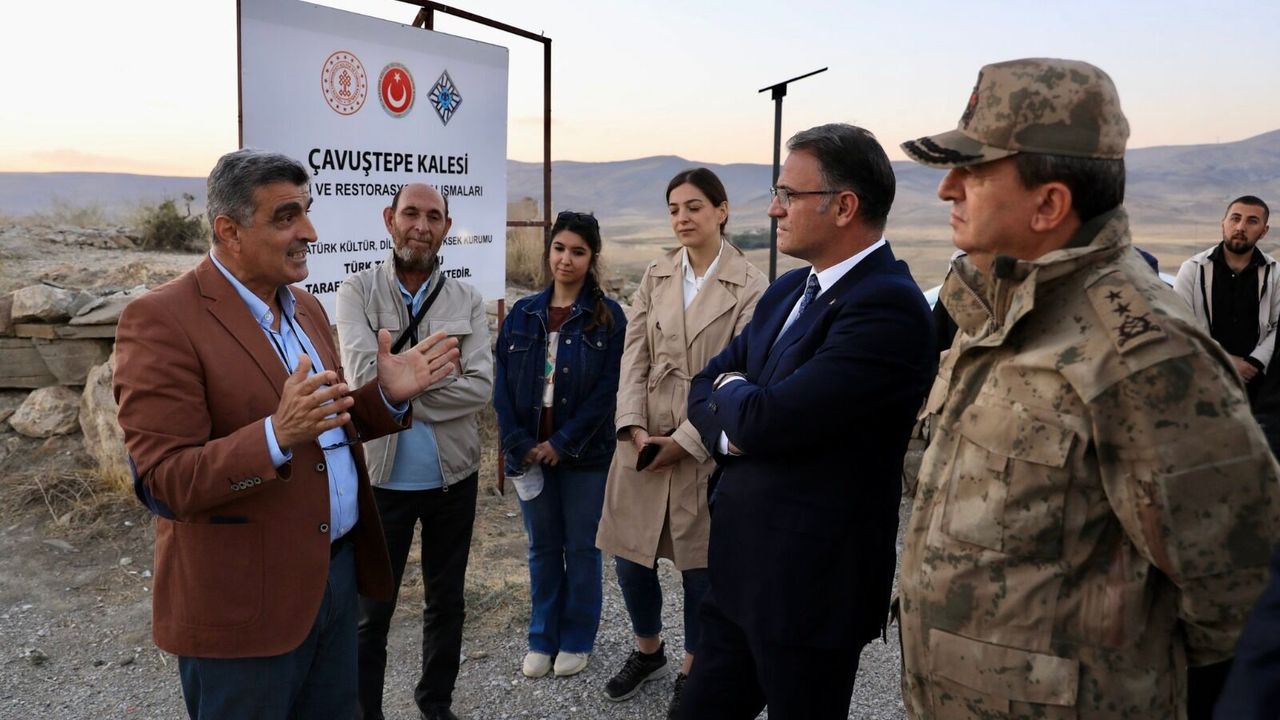 Van Valisi Ozan Balcı, Jandarma Asayiş Kolordu Komutanı Tümgeneral Aykut Tanrıverdi, Cumhuriyet Başsavcısı Harun Karahan, İl Jandarma Komutanı Tuğgeneral Adem Şen ile Gürpınar ilçesinde kazı çalışmaları devam eden Urartulara ait Çavuştepe Kalesi’nde incelemelerde bulundu.
