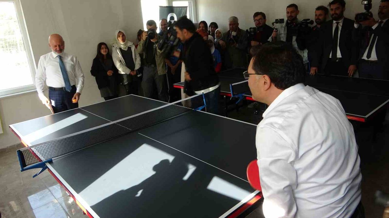 Konuşmaların ardından Vali Çiçek öğrenciler ve protokol ile masa tenisi oynarken, penaltı da kullandı.