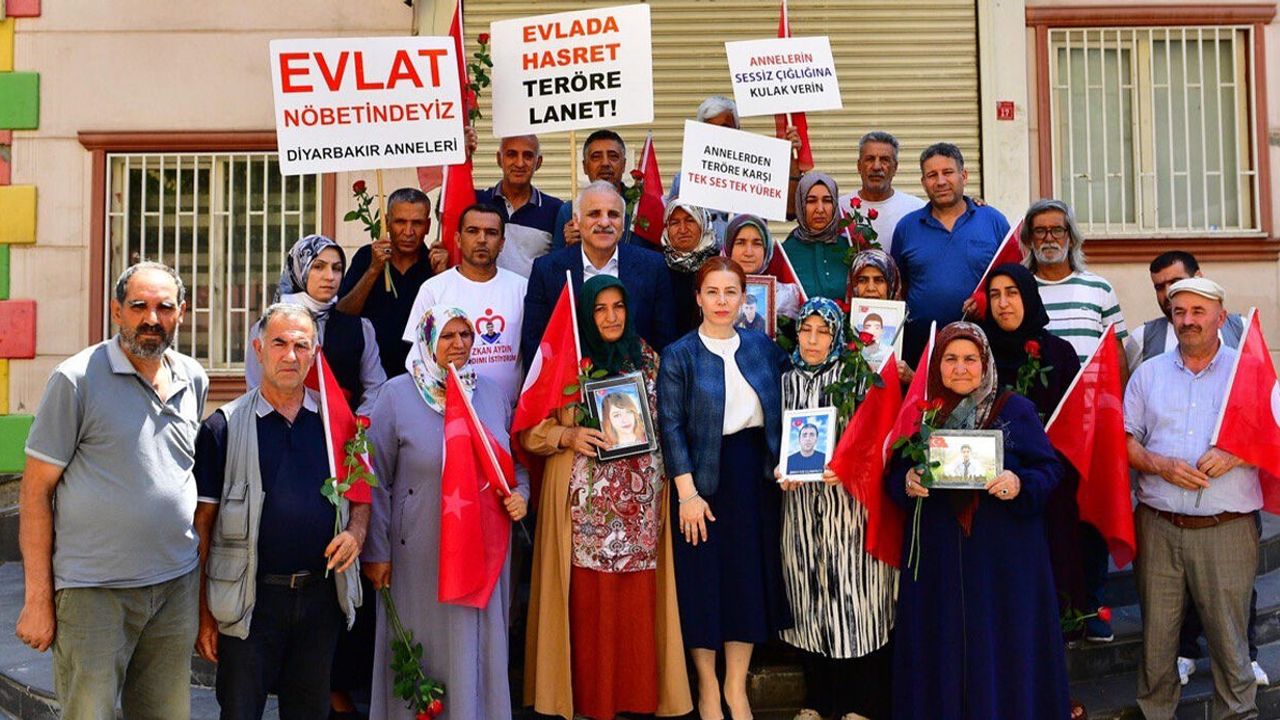 Çocuklarının terör örgütü PKK mensupları tarafından kandırılarak dağa kaçırıldığını belirten Diyarbakır annelerinin evlat mücadelesi bin 776 gündür sürüyor. HDP il binası önünde nöbetini kararlılıkla sürdüren ailelere Diyarbakır Valisi Murat Zorluoğlu ve eşi ziyaret gerçekleştirdi. Vali Zorluoğlu, çocuklarının yolunu gözleyen annelerle tek tek görüştükten sonra anne ve babalara gül hediye etti.