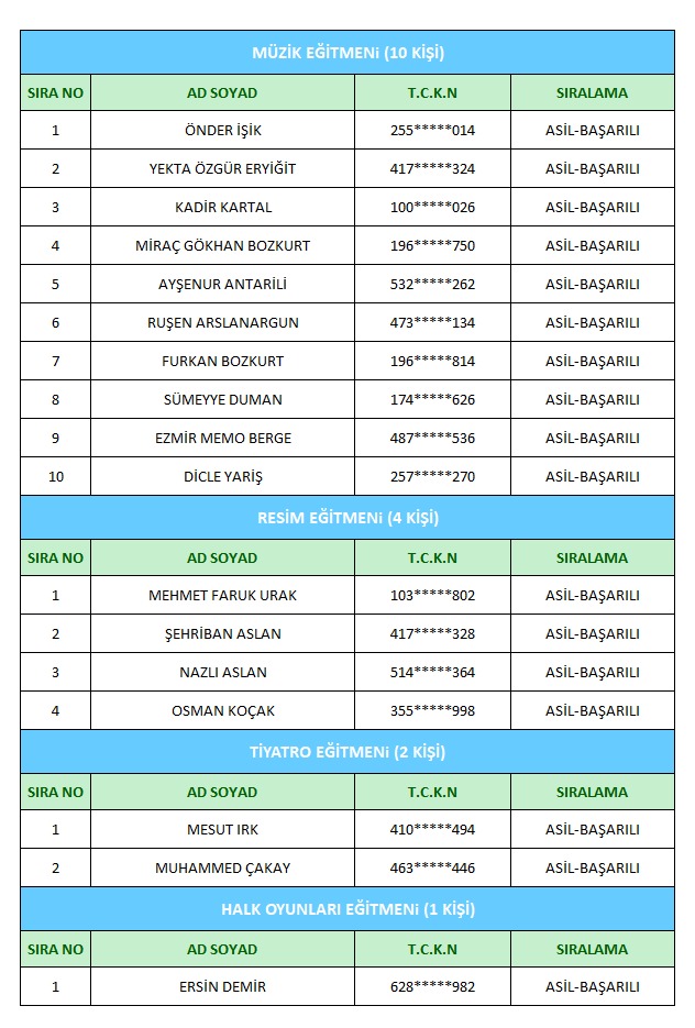 İŞTE ALINAN PERSONEL İSİMLERİ
