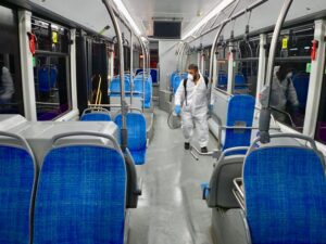 Van Büyükşehir Belediyesi’nin halk sağlığına yönelik çalışmaları sürüyor. Bu kapsamda Sağlık İşleri Daire Başkanlığı tarafından halk otobüslerinde dezenfekte çalışması gerçekleştirildi.