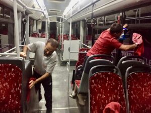 Günlük 50 bin kişinin kullandığı Mor otobüsler, her gün temizlik ekipleri tarafından vakumlu süpürgelerle kaba pisliklerden arındırıldıktan sonra titizlikle temizleniyor. Otobüslerin yolcu koltukları, düğmeler, direksiyon, cam kenarları, lastikleri, şoför paravanı ve yolcu tutamakları gibi bölgeler detaylı bir şekilde dezenfekte ediliyor. Ayrıca araçlarda belli aralıklarla gribal enfeksiyonlara karşı özel ilaçlarla dezenfekte işlemleri de yapılıyor.