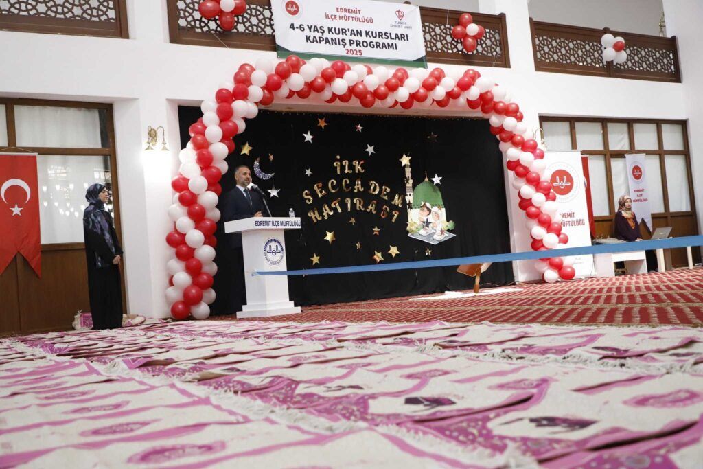 İlçedeki 12 Kur’an Kursu’nda, 30 ayrı sınıfta eğitim gören toplam 420 minik öğrenci için özel olarak hazırlanan ve üzerlerinde öğrencilerin isimlerinin yer aldığı seccadelerle anlamlı bir kapanış programı düzenlendi.