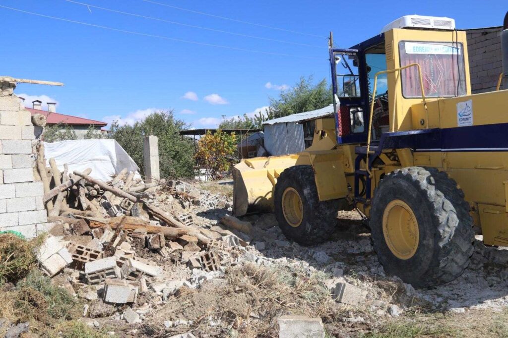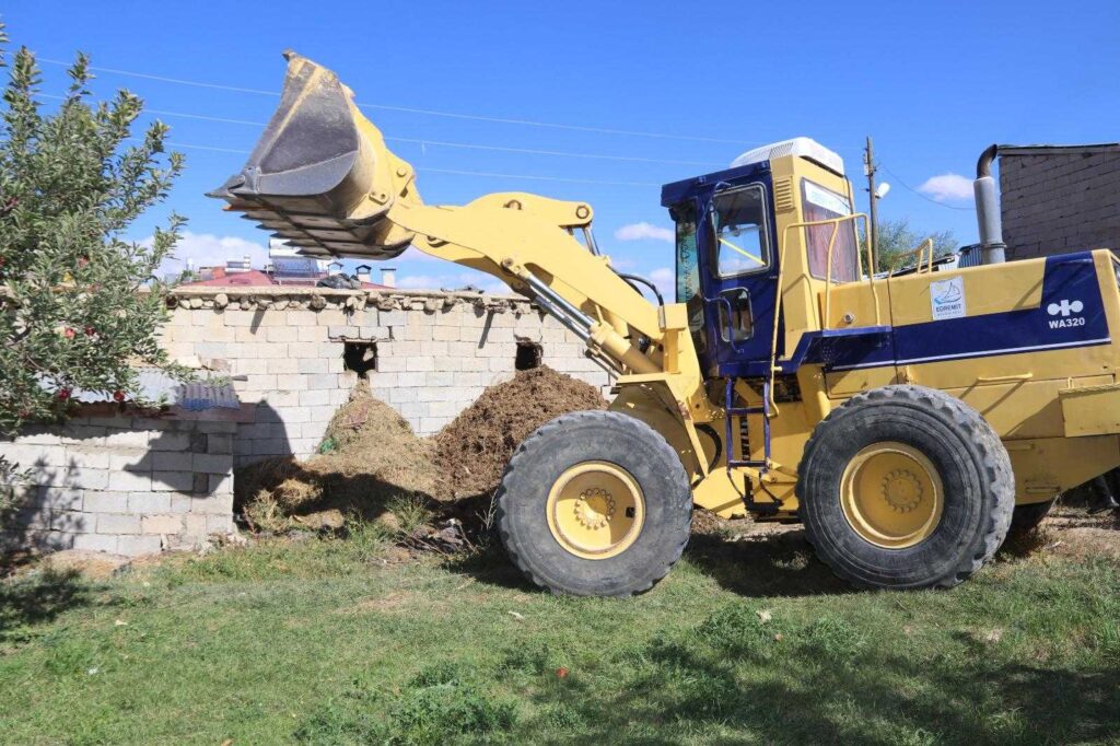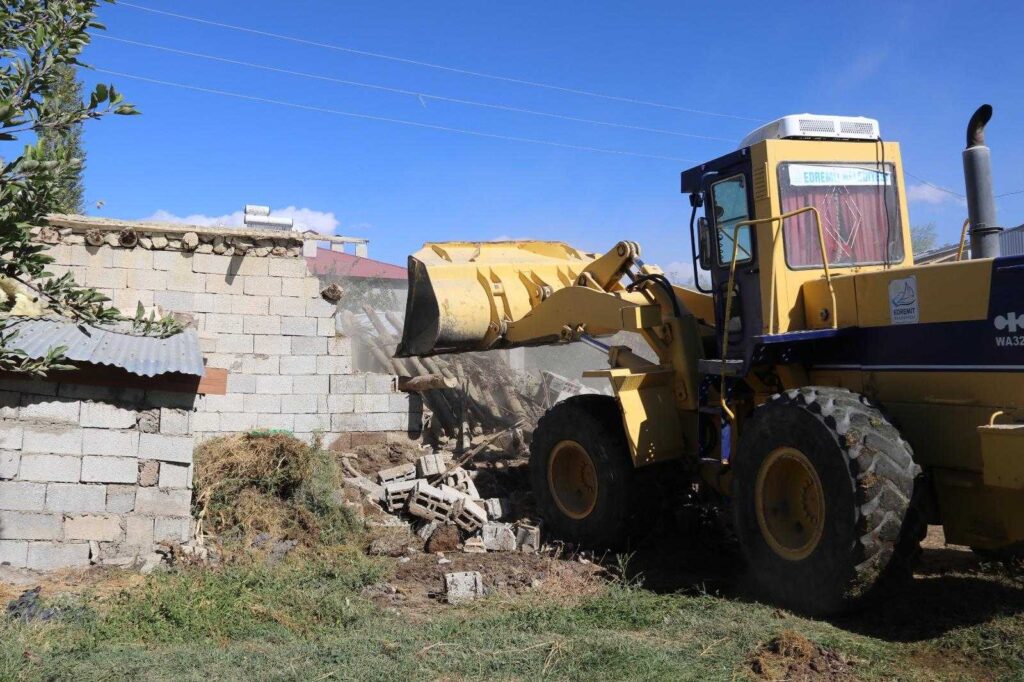 Edremit Belediyesi çevre ve görüntü kirliliğine neden olan, insan yaşamını olumsuz etkileyen ahırların yıkım işlemini dört koldan sürdürüyor.
