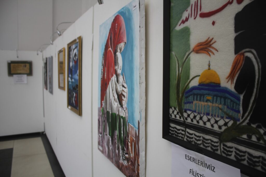 Van’ın İpekyolu Belediyesi, katliamın başladığı 7 Ekim’den bu yana birçok etkinliğe eve sahibi yaptı. Belediyeye bağlı Atatürk Sanat Galerisinde şimdiye kadar birçok sergi yapıldı. Bugün de ilde görev yapan öğretmenler ve sanatçılar tarafından yapılan eserler sergilendi. Yapılan karma resimler ve çalışmalarla Filistin’de yaşanan zulme dikkat çekildi.