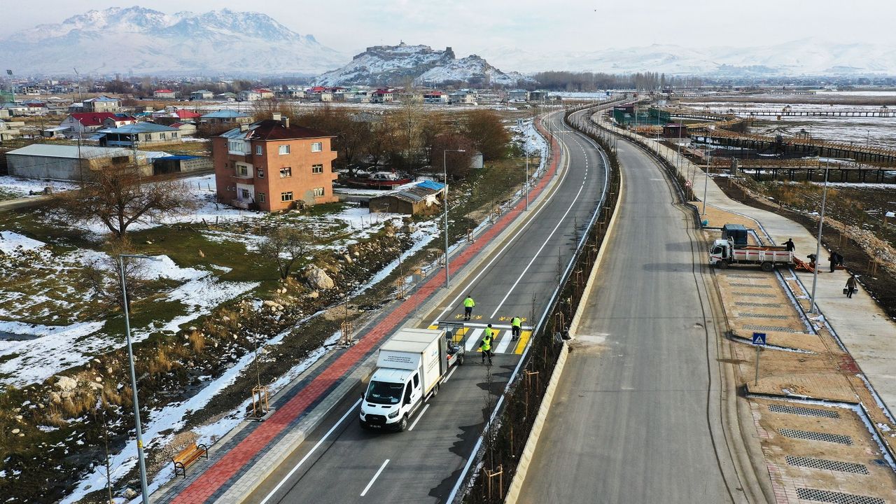 Vanlıların yarım asırlık özlemi olan 12 kilometrelik Sahil Yolu ve 1100 dönümlük Sahil Parkı Rekreasyon Alanı Projeleri tamamlanıyor. Sıcak asfalt, ışıklandırma ve altyapı çalışmaları tamamlanan Van Gölü Sahil Yolu’nda son dokunuşlar yapılıyor. Bu kapsamda Ulaşım Dairesi Başkanlığı ekipleri, yol çizgi çalışması yapıyor. Daha önce trafik levha çalışmaları tamamlanan İskele-Fidanlık arasındaki birinci etapta yaya geçitleri ve yol çizgi çalışmaları da hızla tamamlanıyor. Hummalı bir çalışma yürüten ekipler, kısa sürede çalışmalarını tamamlayacak.