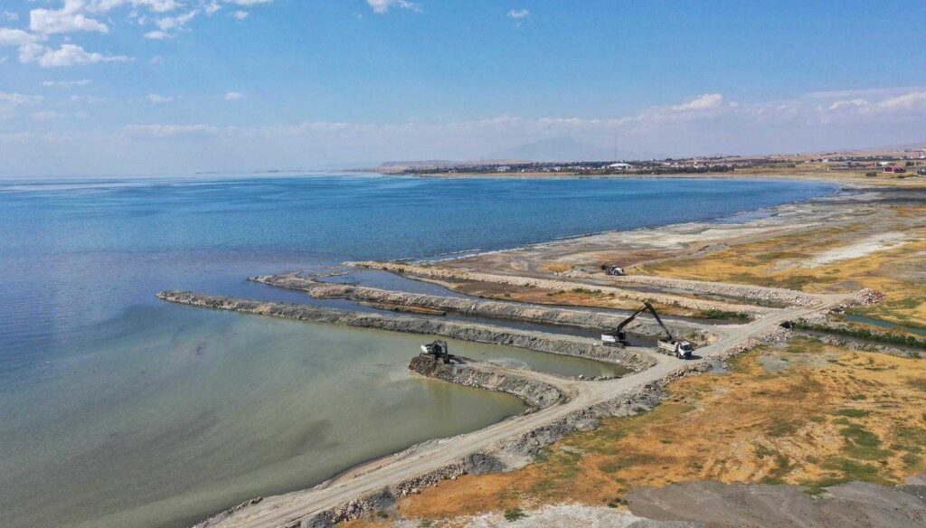 Çevre Koruma ve Kontrol Dairesi Başkanlığınca yürütülen çalışmalar, İskele 15 Temmuz Şehitler Parkı ile Van İleri Biyolojik Atıksu Arıtma Tesisi arasındaki 3’üncü etapta devam ediyor. Çok sayıda iş makinası, kamyon ve personelin görev aldığı alanda çalışmaların devam ettiğini belirten Van Büyükşehir Belediyesi Çevre Koruma Kontrol Dairesi Başkanlığı Van Gölü Koruma Şube Müdürlüğü Şefi Bayram Ortasaç, “ Dip çamuru temizleme çalışmalarımız kendi bünyemizdeki araç ve gereçlerle hummalı bir şekilde sürüyor. Burada günlük ortalama 350-400 metreküp dip çamuru çıkarıyoruz. Bu çalışma Van Gölü için hayati önem arz ediyor. Van Gölünün nefes almasını sağlıyor. Çalışmalarımız inşallah devam edecek” dedi.