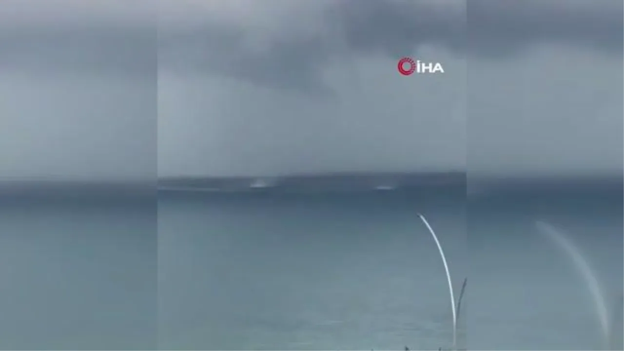 VAN - Van'ın Edremit ilçesinde sabah saatlerinde kısa süreli yağan sağanak sonrası Van Gölü'nde hortum oluştu.