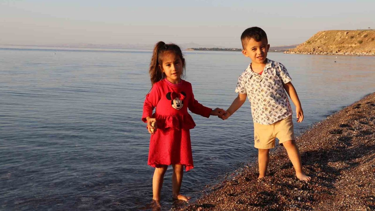 Van’da aşırı sıcaklardan bunalan vatandaşlar serinlemek için Van Gölü sahillerine akın etti.