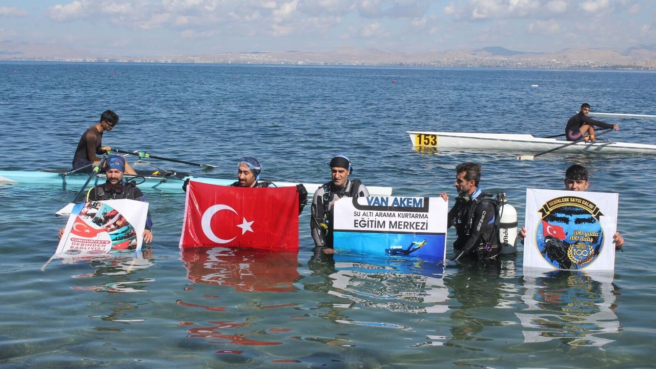 Etkinlik çerçevesinde Van AKEM Başkanı Halil İbrahim Atacan ve dalış ekibi de dünyanın en büyük sodalı gölü olan Van Gölü’ne bir dalış gerçekleştirdi. Dalış ekibi, gölün derinliklerinde “Cumhuriyete Derinden Bağlıyız” yazılı bir pankart açtı. Van Gölü’nde 5 dalgıcın hem su yüzeyinde hem de su altında açtığı pankart renkli görüntülere sahne oldu. Van AKEM üyelerinin gösterisine Van Gençlik ve Spor İl Müdürlüğü kano sporcuları da destek verdi.