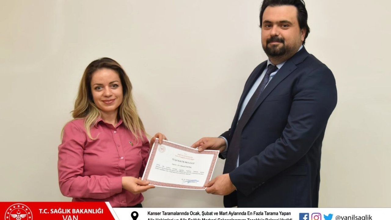 Kanserin erken evrede teşhisi, kanser tedavisinin başarısını artırıyor. Van’da bulunan birçok sağlık kuruluşlarında kanser hastalığının erken teşhisi için ücretsiz taramalar yapılıyor. Van İl Sağlık Müdürlüğünde, sağlık alanında yapılan çalışmaları daha ileriye götürmek amacıyla özverili şekilde çalışanları onure etmek maksadıyla renkli bir etkinliğe imza attı. Sağlık Müdürlüğü tarafından toplum tabanlı kanser taramalarında Ocak, Şubat ve Mart aylarında en fazla tarama yapan Özalp İlçe Sağlık Müdürlüğü, İpekyolu İlçe Sağlık Müdürlüğü ve Aile Hekimleri ile Aile Sağlığı çalışanlarına teşekkür belgesi verildi. Teşekkür belgelerini Van İl Sağlık Müdürü Op. Dr. Muhammed Tosun ve Halk Sağlığı Hizmetleri Başkanı Dr. Muhammed Taha Bostancı verdi.