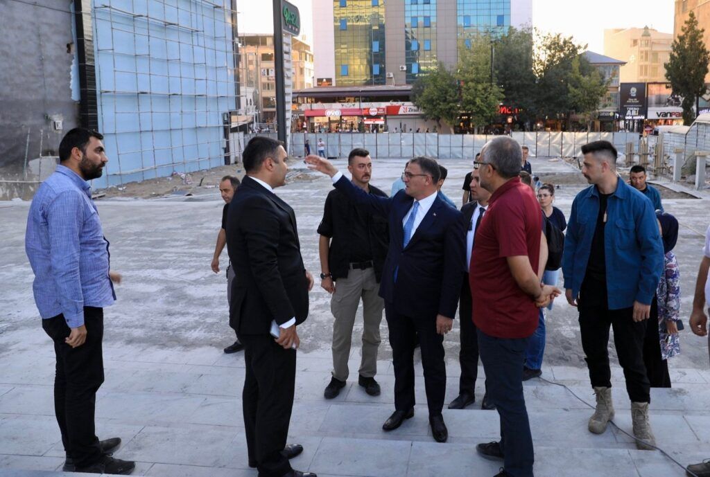 Van Valisi ve Büyükşehir Belediye Başkan Vekili Dr. Ozan Balcı yapımı devam eden kent meydanında incelemelerde bulundu.