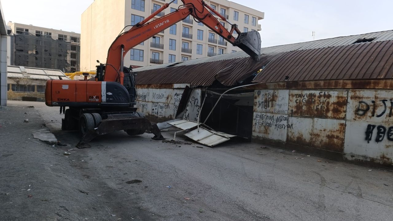 Kent merkezinde uzun süredir atıl durumda bulunan ve son yangında ağır hasar gören 207 dükkânlık Van Mısır Çarşısı için hazırlanan yeni proje kapsamında yıkım çalışmaları bu sabah saatlerinde başladı. Esnaf tarafından boşaltılan dükkânlar, belediye ekiplerince iki iş makinesiyle kontrollü şekilde yıkılıyor. Çalışmaların kısa sürede tamamlanması bekleniyor.