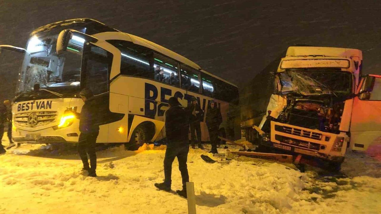 Alınan bilgiye göre kaza, sabah saat 05.00 sıralarında Bitlis-Tatvan kara yolu üzerinde meydana geldi. İran uyruklu J.G.’nin kullandığı 10 AB 585 plakalı tır, E.Ç. yönetimindeki Best Van firmasına ait 65 BJ 359 plakalı Mercedes marka yolcu otobüsüne çarptı. Çevredekilerin haber vermesi üzerine kaza yerine 112 Acil Sağlık ve polis ekipleri sevk edildi. Kazada, otobüste hafif yaralanan yolculardan 19 yaşındaki Y.B.Y. ile 32 yaşındaki E.K. Bitlis Devlet Hastanesine kaldırıldı.