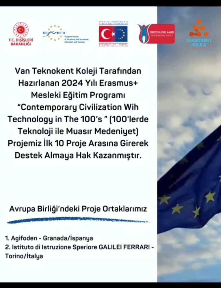 Van Teknokent Koleji, 2024 yılında Avrupa'da düzenlenen Erasmus+Teklif Çağrısı Mesleki Eğitimde Küçük Ölçekli Ortaklıklar (KA210-VET) faaliyetleri kapsamında başvurduğu projesiyle önemli bir başarı elde etti. Projeler arasında ilk 10'a girerek hibe almaya hak kazanan Van Teknokent Koleji, Türkiye genelindeki altı okuldan birisi olarak bu prestijli destekten faydalanacak. Kolejinin projesi, öğrencilerin uluslararası deneyim kazanması ve mesleki eğitim alanında kaliteli bir gelişim sağlamalarını amaçlıyor. Bu kapsamda, projenin ortakları arasında İspanya ve İtalya yer alıyor. Öğrenciler, Erasmus programı çerçevesinde bu ülkelerde eğitim ve deneyim fırsatı elde edecek. Kolej, bu başarılı girişimiyle uluslararası işbirliği ve öğrenci gelişimine önemli bir katkı sağlamayı hedefliyor. Öğrencilerin kültürel değişim ve mesleki yeteneklerini geliştirme fırsatı sunan bu proje, kolejinin vizyonu doğrultusunda önemli bir adımı temsil ediyor.
