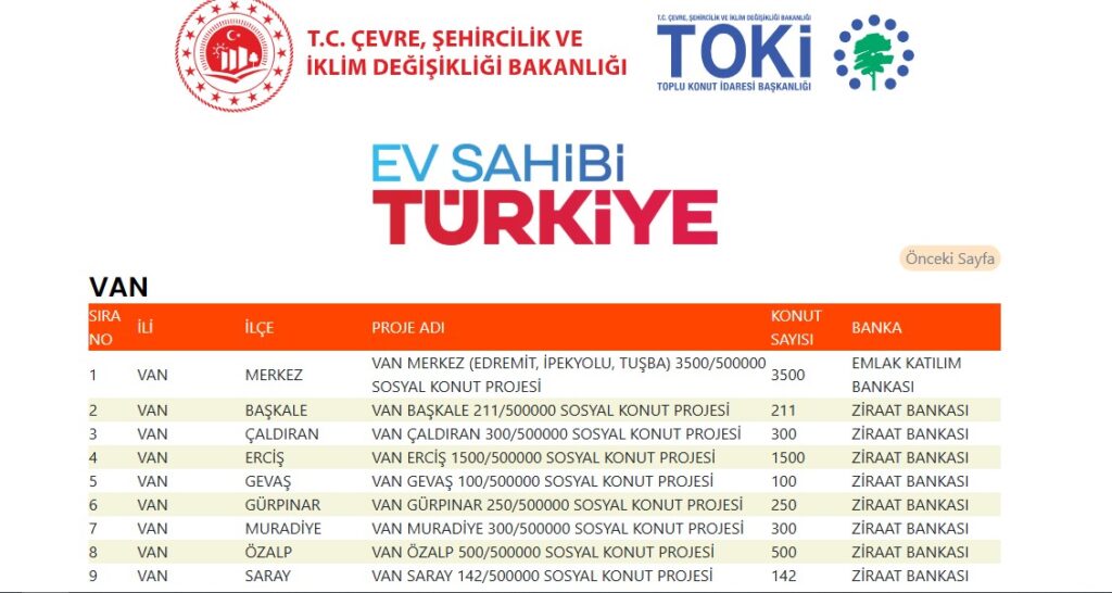 Toplu Konut İdaresi Başkanlığı (TOKİ) tarafından Türkiye genelinde yürütülen “500 Bin Sosyal Konut Projesi” kapsamında Van’da yapılacak konutların ilçelere göre dağılımı belli oldu.