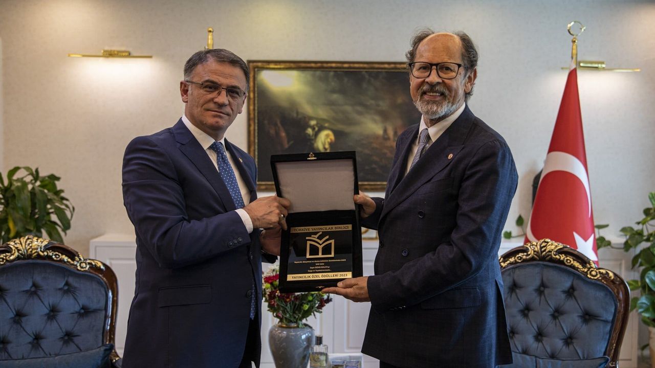 Ödül, Türkiye Yayıncılar Birliği Başkanı Kenan Kocatürk tarafından Vali Balcı’ya makamında takdim edildi.