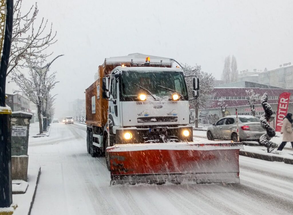 Van Büyükşehir Belediyesi ekipleri, kentte etkili olan kar yağışı ile birlikte harekete geçerek kapalı olan mahalle yollarında ve merkezdeki 25 ana arter ve 65 ara arterde küreme ve tuzlama ve kaldırım temizleme çalışması başlattı.