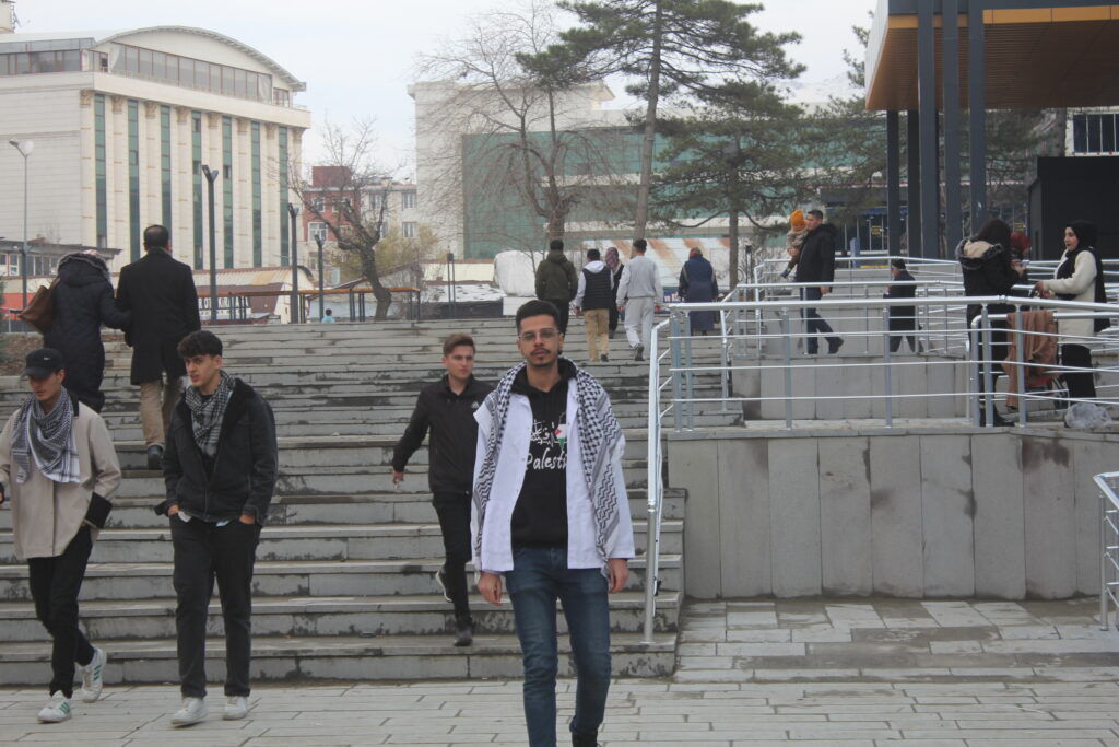 Van Yüzüncü Yıl Üniversitesi Tıp Fakültesi beşinci sınıf öğrencisi Muhammed Alusta, Filistin’de büyük bir zulmün olduğunu ve savaşın biran önce bitmesi gerektiğini söyledi. Alusta, ayrıca boykota devam edilmesi gerektiğini söyledi.