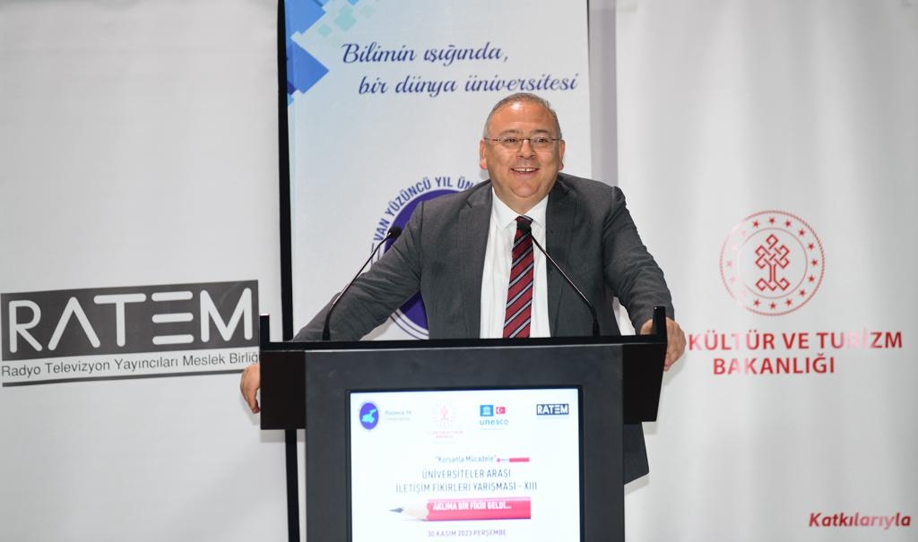 Radyo Televizyon Yayıncıları Meslek Birliği’nin (RATEM) önceki yıllarda gerçekleştirdiği panelleri ve yarışmaları konu alan bir video gösteriminden sonra açılış konuşmasını gerçekleştiren Üniversitemiz Rektörü Prof. Dr. Hamdullah Şevli, bulunduğumuz zamanın bir zorunluluğu olarak dünyada büyük bir değişim, dönüşüm halinde olduğunu bu çerçevede Van Yüzüncü Yıl Üniversitesinin tek yönlü veya tek disiplinli bir eğitim modeli yerine disiplinler arası, yenilikçi ve girişimci bir bilim anlayışı hâkim olduğunu ifade etti.