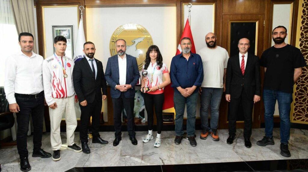 Şampiyonada önemli bir başarıya imza atan öğrencilerimiz, Spor Bilimleri Fakültesi Dekanı Prof. Dr. Muzaffer Selçuk ile birlikte Üniversitemiz Rektörü Prof. Dr. Hamdullah Şevli’yi makamında ziyaret etti. Ziyarette, sporcuların elde ettiği dereceler takdirle karşılanırken, teknik heyetten öğrencilerimizin antrenörü Dr. Sinan Ağlar da tebrik edildi.