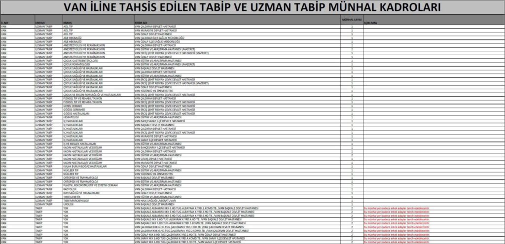 Van İl Sağlık Müdürlüğü’nden yapılan açıklamaya göre, kente 49 uzman hekim ve 20 pratisyen hekim atanacak. Yeni hekimlerin önümüzdeki günlerde görevlerine başlayacakları bildirildi.