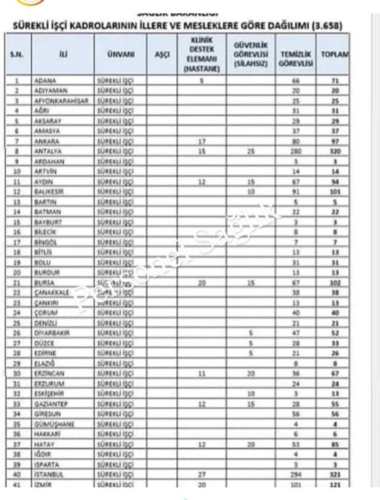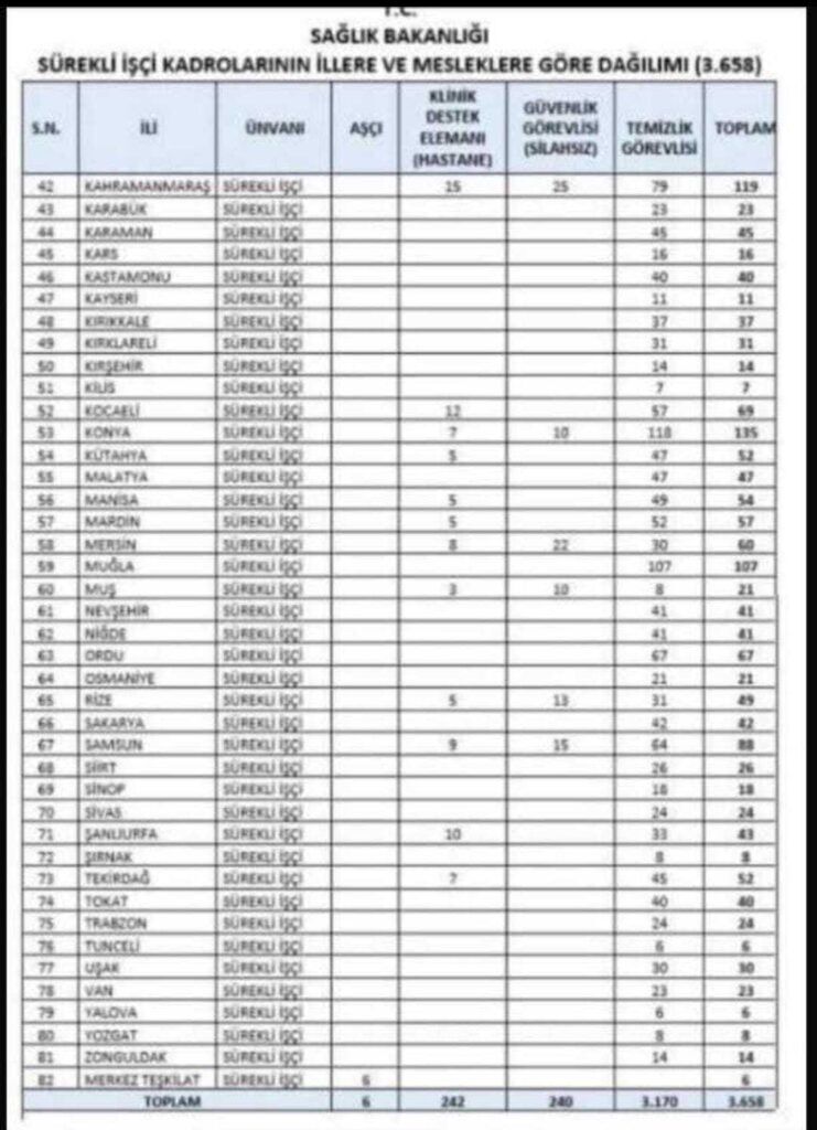 İŞTE İLİ İL ALINACAK PERSONEL SAYISI VE BRANŞLAR...