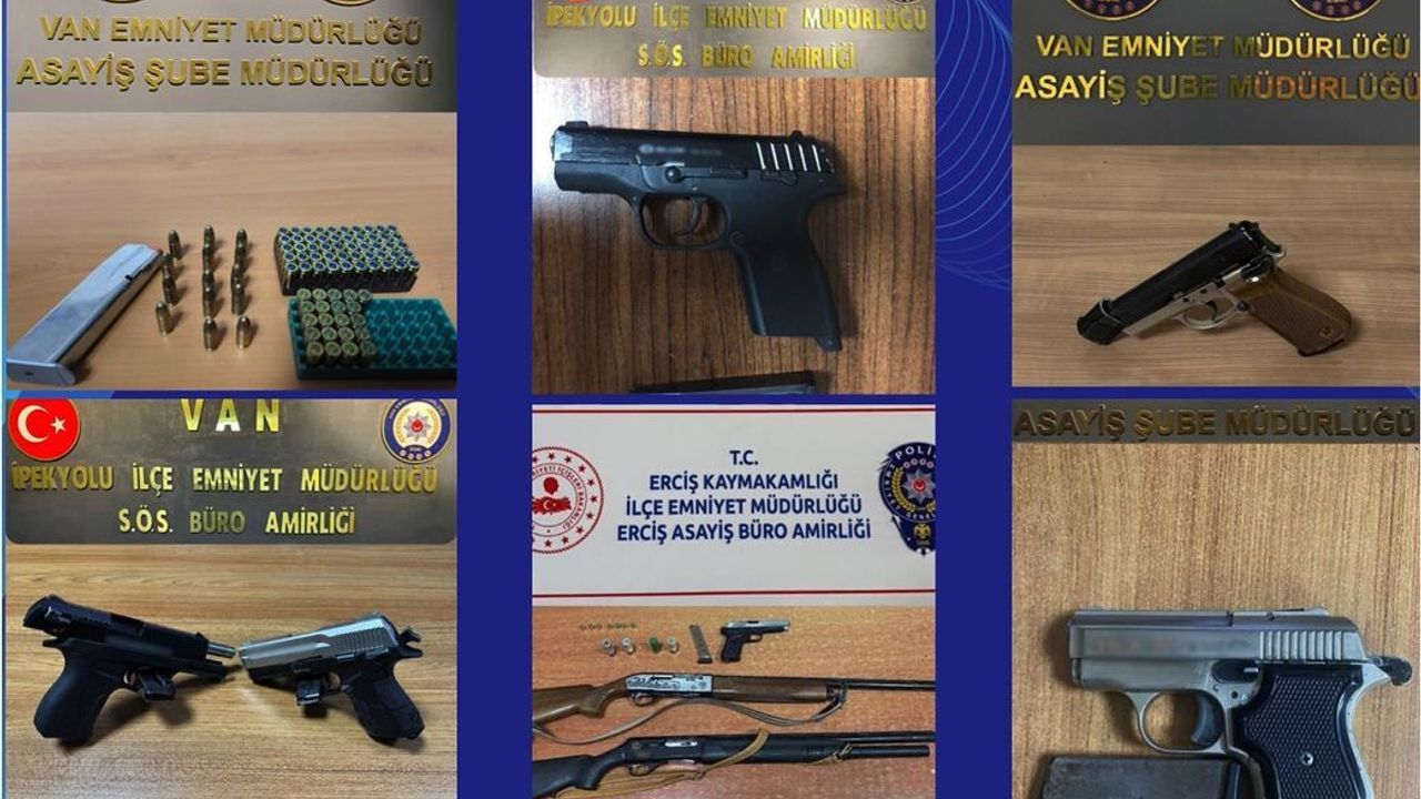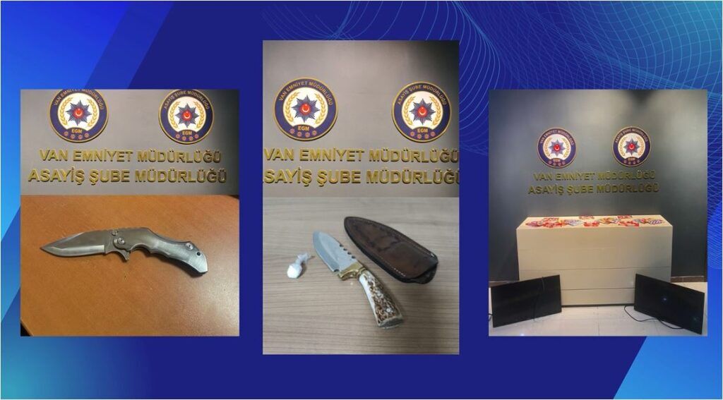 Van Emniyet Müdürlüğünden yapılan açıklamada, il genelinde kamu düzeninin sağlanması için suç ve suçlularla mücadele kapsamında; Asayiş Şube Müdürlüğü ve İlçe Emniyet Müdürlüğü/Amirliği görevlilerince yürütülen çalışmaların devam ettiği belirtildi. Açıklamada, “6136 ve 5729 Sayılı Kanun’a Muhalefet olaylarında; 5 adet silah, 2 adet tüfek, 1 adet kurusıkı tabanca, 85 adet fişek ve 3 adet bıçak ele geçirilmiştir. Diğer suçlardan 2 adet televizyon ve muhtelif malzemeler ele geçirilmiştir. 5326 sayılı Kabahatler Kanunu’nun 34. Maddesine istinaden kumar oynayan 58 şahsa 721 bin 266 TL idari para cezası uygulanmıştır. İl Emniyet Müdürlüğümüz tarafından toplam 257 aranan şahıs yakalanmış, 141 yıl 11 ay 15 gün kesinleşmiş hapis cezası bulunan 74 şahıs adli makamlarca tutuklanmıştır” denildi.