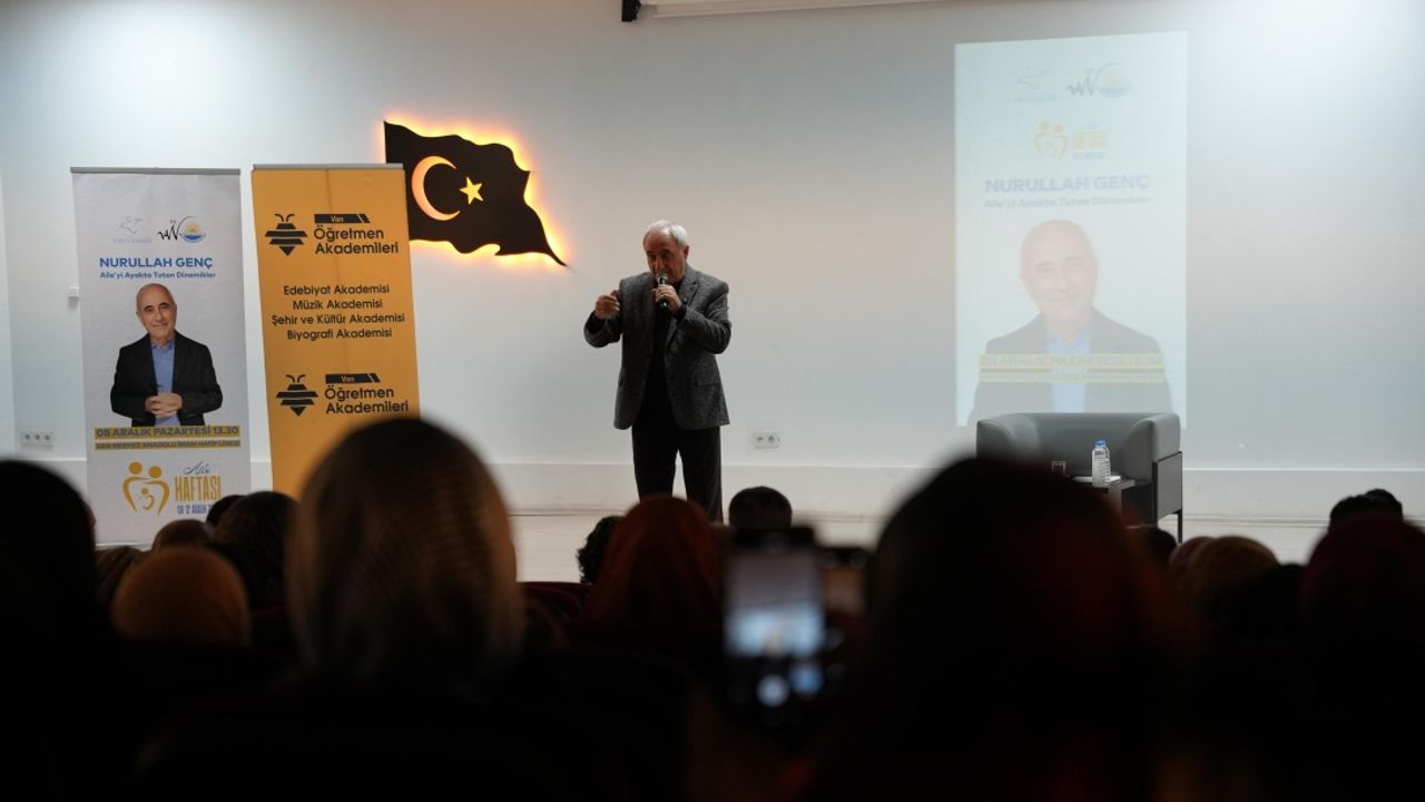 Van Öğretmen Akademileri çatısı altında gerçekleştirilen söyleşide Nurullah Genç, "Aileyi Ayakta Tutan Dinamikler" başlıklı kapsamlı bir konuşma yaptı. Genç, aileyi güçlü kılan temel unsurları tarihsel ve toplumsal perspektifle ele alarak; sevgi, adalet, fedakârlık, liyakat, değer aktarımı ve sağlıklı iletişim gibi konular üzerinde durdu. Ayrıca aile kurumunun sadece bireylerin özel alanı olmadığını, toplumun geleceğini şekillendiren bir yapı olduğunu vurguladı.